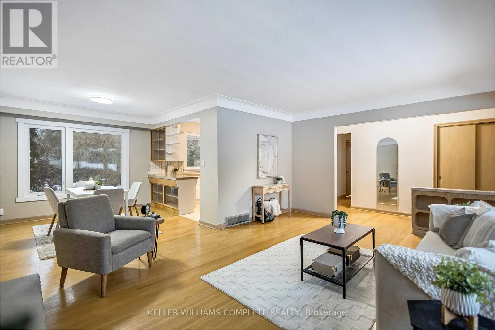 +"PublicRemarks": "This impressive property stands out from the moment you arrive, set on a premium pie shaped lot measuring approximately 160 by 126 at its widest and offering exceptional space, privacy and long term potential. Minutes from the Linc, the 403, schools, parks, trails, Meadowlands shopping and restaurants, this all brick bungalow pairs everyday convenience with a setting that feels genuinely elevated. A large driveway and attached one car garage add practical ease before you even step inside. The main level features an oversized living room with hardwood flooring and a generous bay window, flowing naturally to the dining room and a spacious kitchen with a peninsula designed for smooth, comfortable living. A newly renovated three piece bathroom serves the floor, along with three well sized bedrooms including a welcoming primary. Oversized windows throughout showcase the remarkable grounds from every vantage point. A separate rear entrance leads to a finished basement that enhances versatility, offering a great room with a fireplace, a recreation room, a workshop, a cold room, laundry and an additional three piece bathroom, making an in law arrangement a viable option. Outdoors, mature landscaping, tall trees and a custom patio create a private retreat on one of the standout lots in the province. With strong fundamentals, impressive land value and room to tailor the property to your needs, this home offers an exceptional opportunity to invest in both comfort and future growth. (id:62650)"