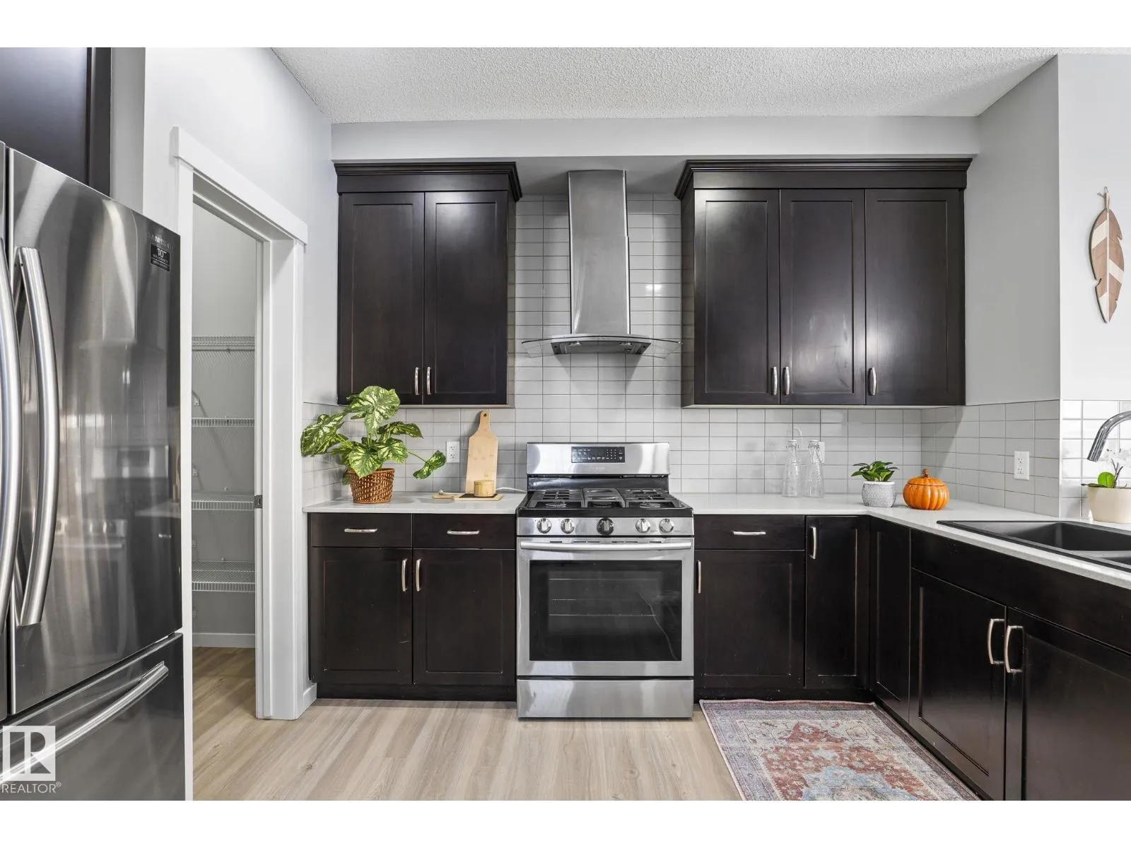 +"PublicRemarks": "Make this affordable three-bedroom homes yours. With appealing features like a double attached garage, end unit townhouse, 3 spacious bedrooms upstairs, 2.5 bathrooms including a 3pc primary ensuite, large living room with feature wall perfect for hosting guests, kitchen upgraded with quartz counters and lastly luxury vinyl plank flooring throughout the entire unit. The location is prime with amenities all within walking distance from schools, daycare, loads of shopping and future LRT expansion. (id:62783)"