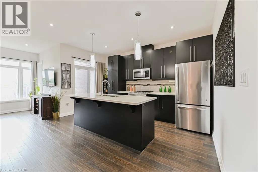 +"PublicRemarks": "Stoney Creek Luxury Townhome 3+1 Bed 3 Bath Rooftop Terrace Gorgeous Losani-built home loaded with upgrades! Features 3+1 bedrooms, 3 bathrooms, Open concept, 1797 Sq Ft, versatile office/4th bedroom, spa-like ensuite, walk-in closet, mudroom with garage access, and 650 sq. ft. basement ready to finish with rough in. Enjoy a 103 sq. ft. elevated terrace + 240 sq. ft. rooftop terrace with stunning Green views. 9 ft ceiling on main floor, Oak Staircase, Open concept kitchen with quarts center island, backsplash, plenty of storage and w/o to yard. Lawn moving and Snow cleaning included in common elements, Prime location near highways, parks and amenities. located just minutes from the Confederation GO Station & LRT, QEW, and Red Hill Parkway, Conveniently located close to Grocery Stores, Shoppers Drug Mart, Restaurants, Home Depot, LCBO, Shopping, entertainment, trails and more.. Your dream lifestyle starts here. (id:62650)"