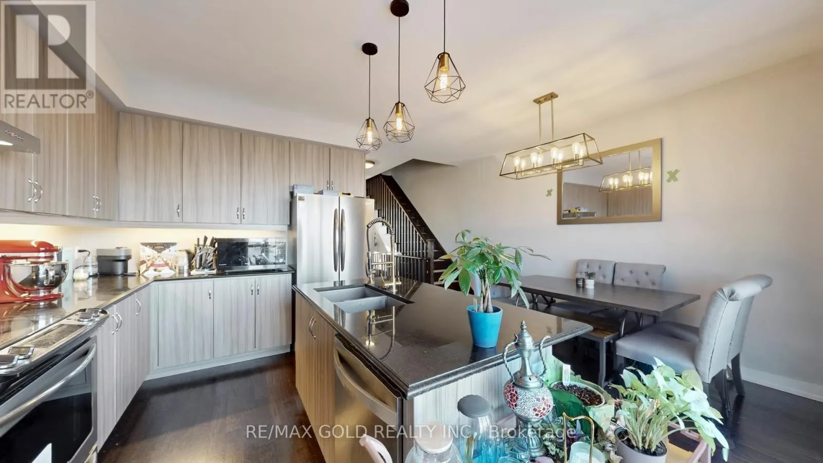 +"PublicRemarks": "Welcome to this exquisite three-storey freehold townhouse in the peaceful community of Rural Vaughan. Just minutes from Maple GO Station, Walmart, parks, transit, and top-rated schools, this beautifully upgraded 3-bedroom, 4-bathroom home offers exceptional comfort and style in an unbeatable location.Step inside to discover a bright and spacious main floor featuring a welcoming living room with pot lights and a walk-out to the backyard-perfect for outdoor relaxation. A convenient 3-piece ensuite with a shower completes this level, offering flexible living options.The second floor showcases a stunning modern kitchen equipped with stainless steel integrated appliances, ample cabinetry, a centre island with pendant lighting, and an inviting atmosphere ideal for cooking and hosting. The adjoining dining area includes a walk-out to a private balcony, perfect for morning coffee or evening gatherings. Across the hall, the family room impresses with an elegant accent wall, cozy fireplace, and a second balcony large enough for comfortable seating. A private den with sliding doors and a large front-facing window makes an excellent home office or study space.On the third floor, the spacious primary bedroom features a 3-piece ensuite with a separate shower and a generous walk-in closet. Two additional well-sized bedrooms provide plenty of room for family living.The unfinished basement offers endless potential-whether you envision a home gym, recreation room, or personal retreat-and includes a dedicated laundry area with washer, dryer, and laundry sink.Outside, the fenced backyard offers privacy and functionality, complete with a patio ideal for barbecues and a garden-ready space for creating your own outdoor oasis. Additional upgraded light fixtures throughout the foyer, powder room, hallways, and multiple living spaces lend an elegant, cohesive glow to the home. Stylish, functional, and perfectly located-this exceptional property is ready to welcome its next chapter. (id:62650)"