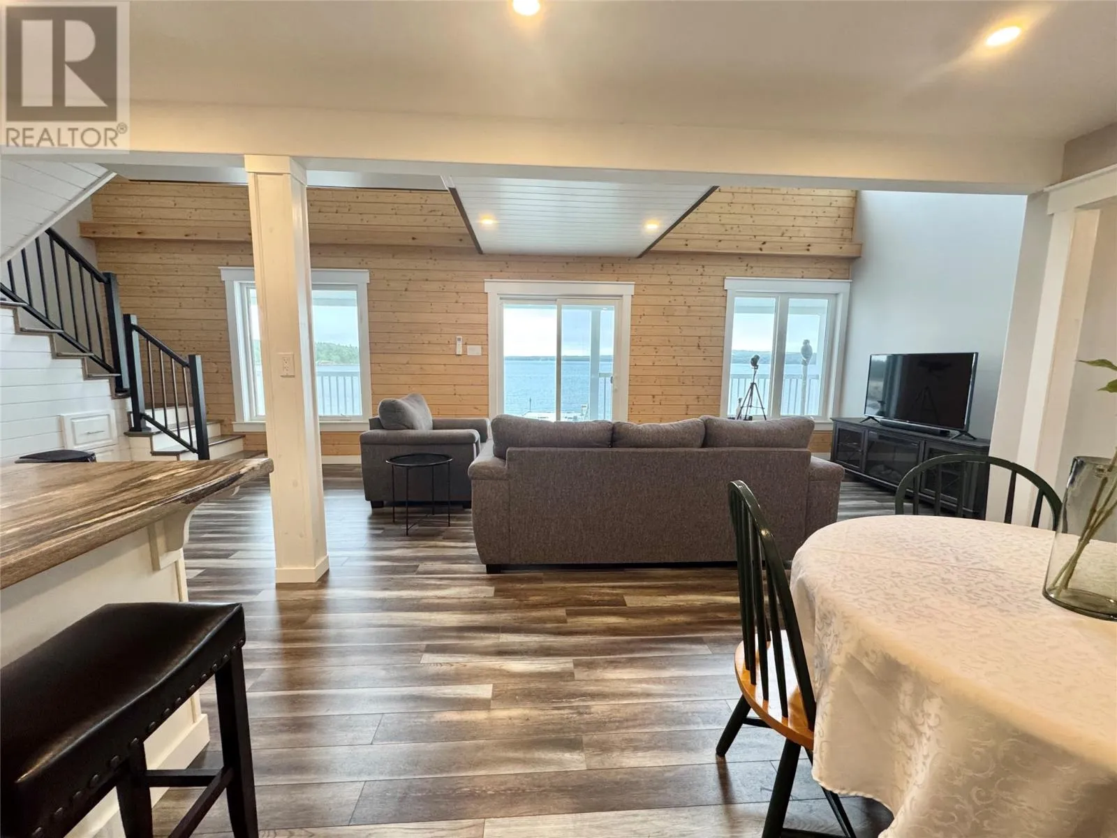 Nestled in the scenic, tranquil coastal community of Campbellton, this breathtaking oceanfront home at 105 Bob Clark Drive offers a turnkey, fully furnished lifestyle with panoramic water views from every level, a private wharf and slipway, and an unbeatable combination of comfort, convenience, and investment potential. Enter through the back into a spacious 33 x 40 garage with 16-foot ceilings,