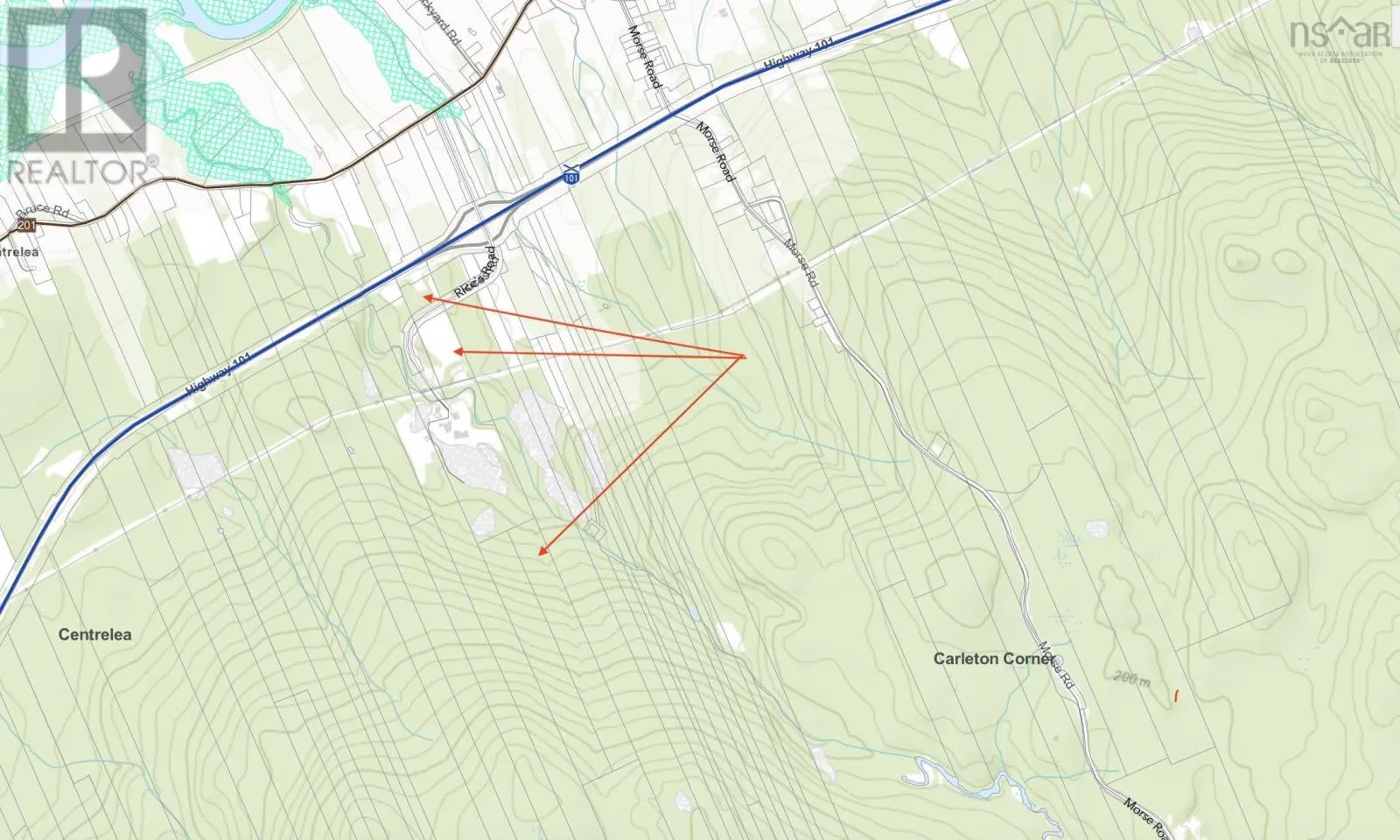 Sixty acres +/-, in 3 Parcels at Rice Road, Carleton Corner. A 17.7 acre parcel is in two sections separated by Rice Road. This is a high visibility potential development property with easy access/visibility to Hwy 101. Also included is an additional 42 acres of wooded property accessed by a right-of-way from the Rice Road property. Establish your new business
