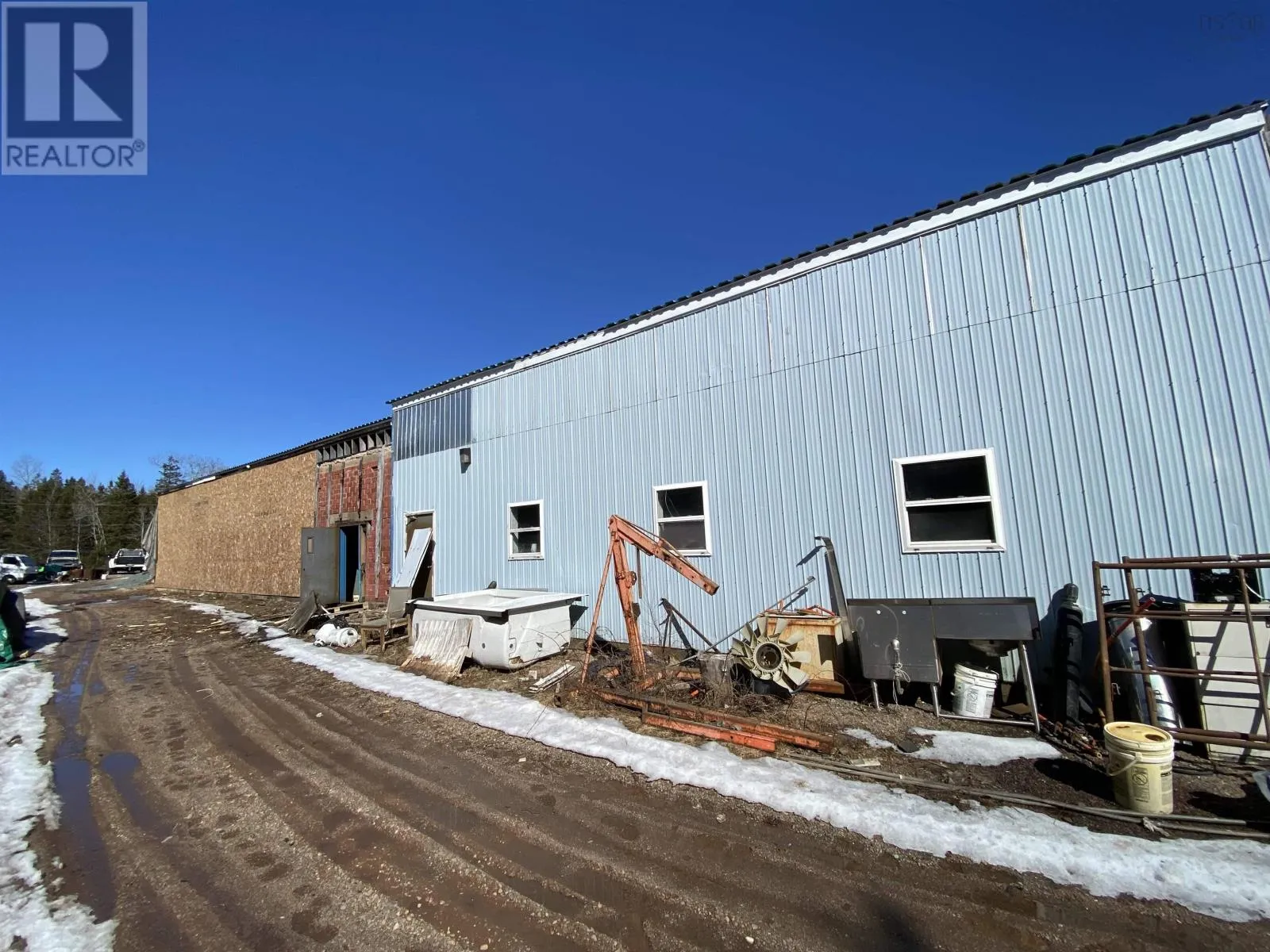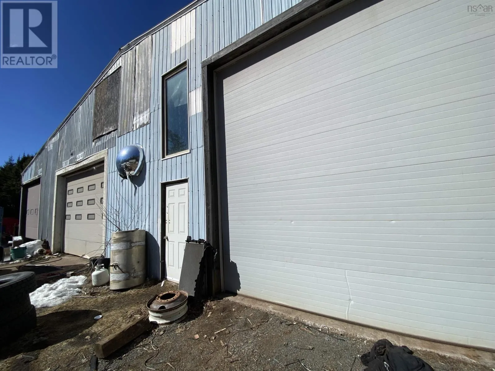 Large industrial warehouse (7695 +/- sq.ft.) for sale in Debert Industrial Park on 1.43 acres. Multiple bays for automotive, storage or various industrial uses. Building currently heated with wood/oil furnace along with a heat pump. Roof requires work to close it in. Room in the yard for storage. Being sold as is , where is.
