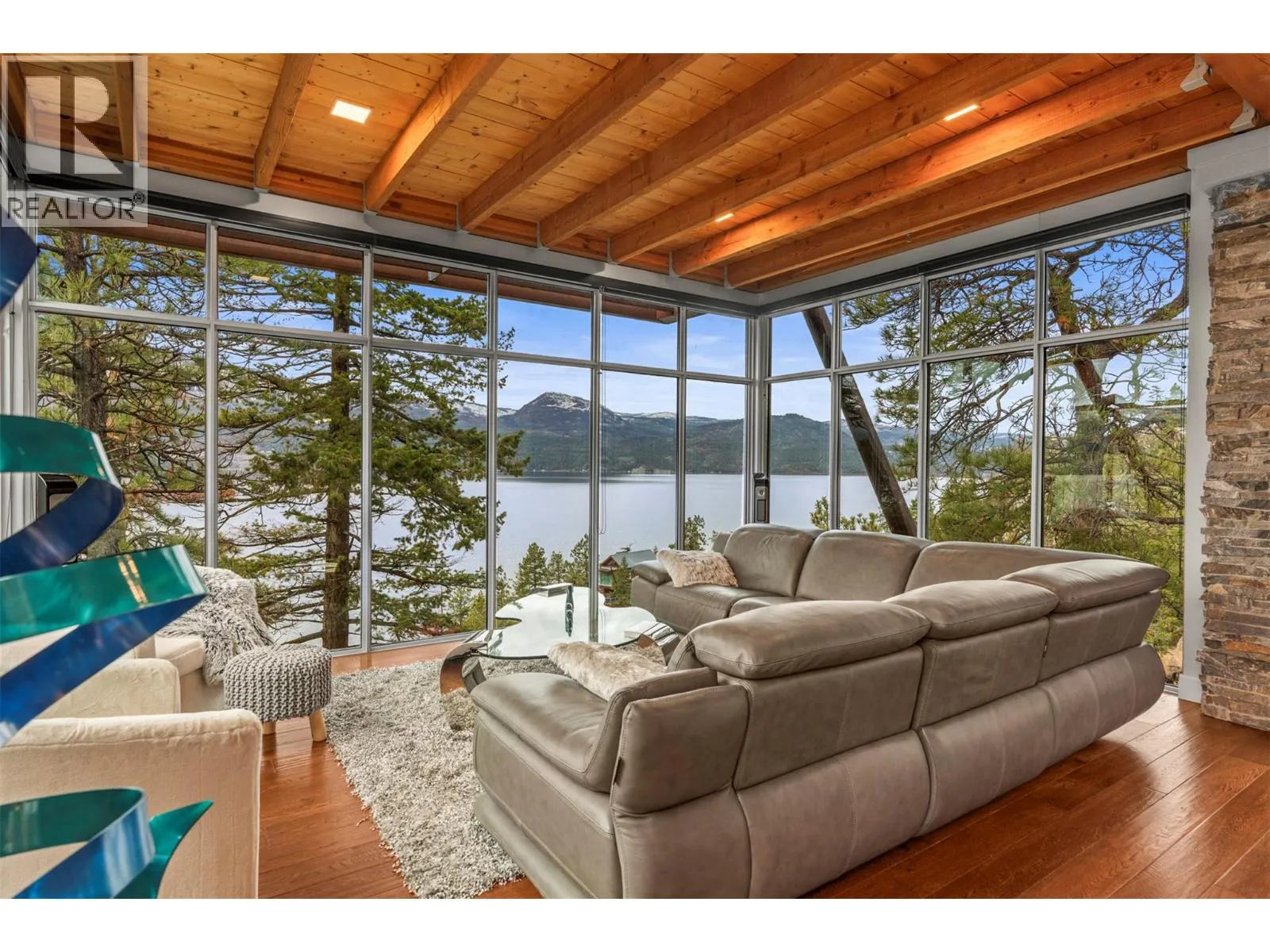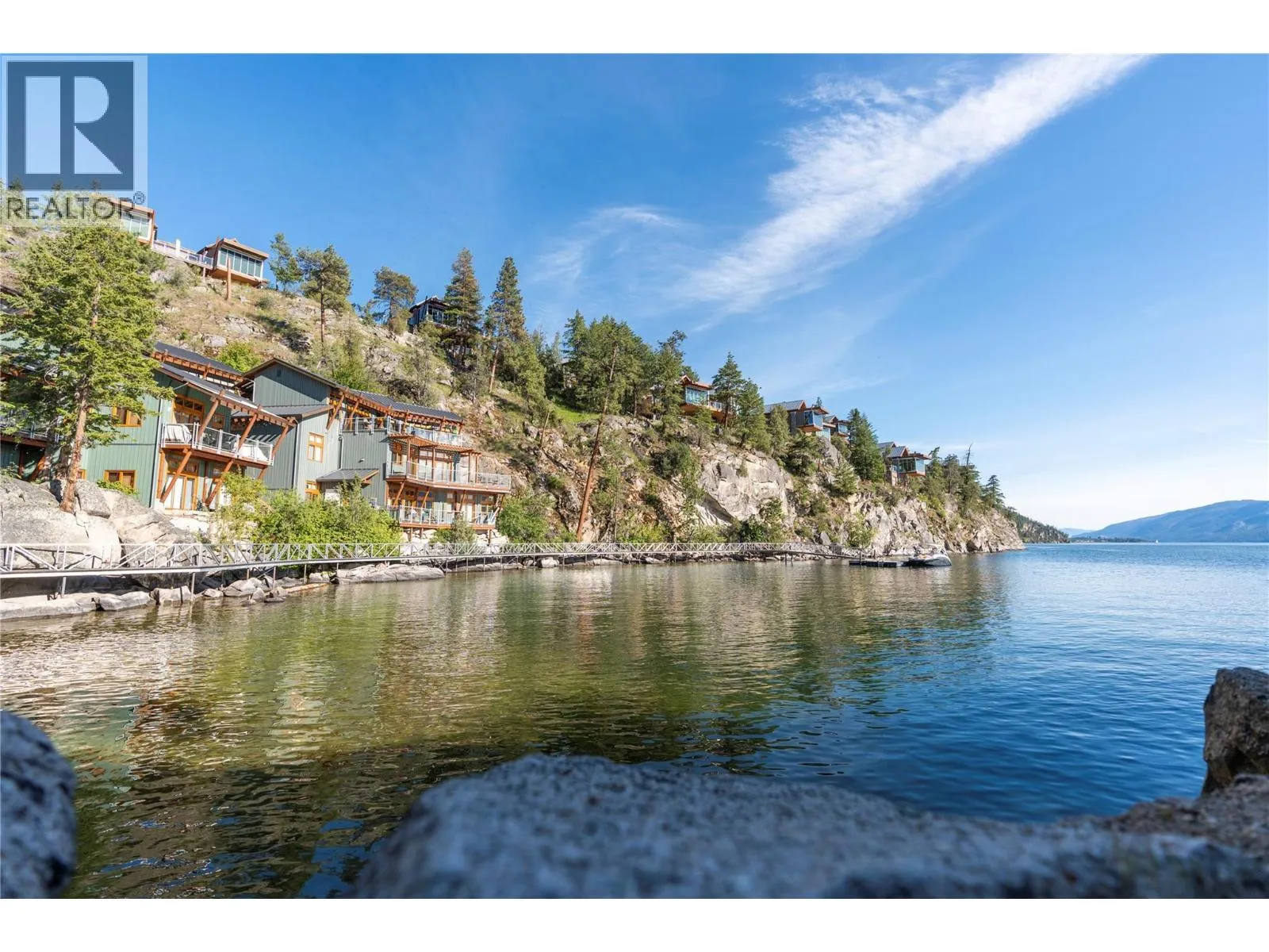 Experience refined lakefront living with unobstructed panoramic views from this stand-alone Ridge Home in the prestigious Outback on Okanagan Lake. Designed for effortless elegance, it features an airy upper level with vaulted ceilings, rich hardwood floors, and a chef-inspired kitchen with custom white cabinetry, quartz surfaces, a walk-in pantry, and an elegant island. Floor-to-ceiling glass and two view decks create