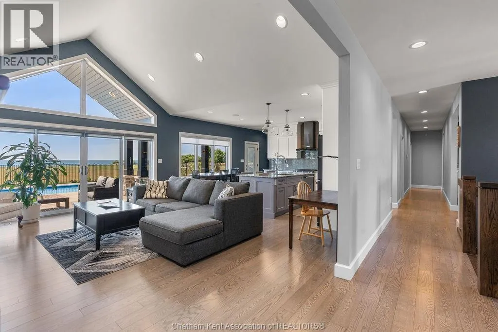 Experience refined lakeside living at 5482 Talbot Trail, a custom-designed executive home offering timeless craftsmanship, ultimate privacy, and sweeping panoramic views of Lake Erie. Situated on 2.29 acres atop a fairy tale 100-foot cliff, this one-of-a-kind residence was built in 2017 and has been meticulously maintained by its original owner. With over 2,300 sq. ft. of luxury living on the