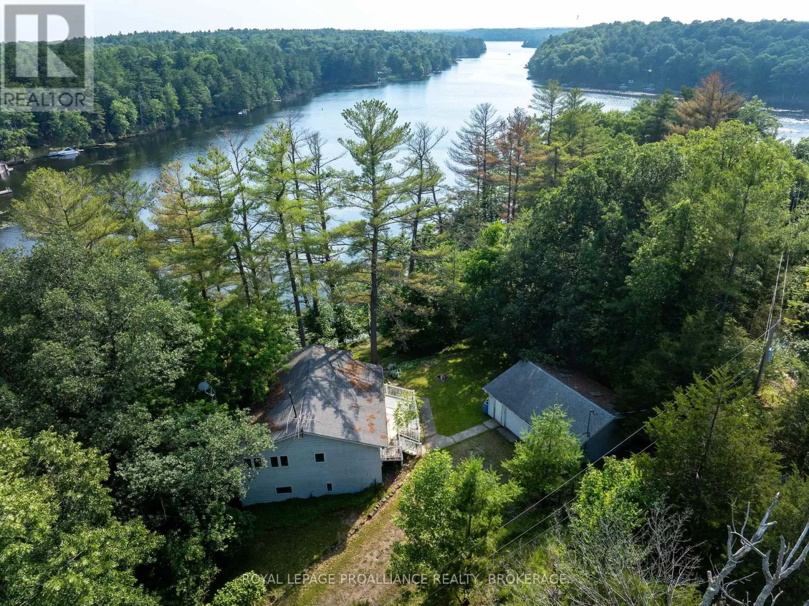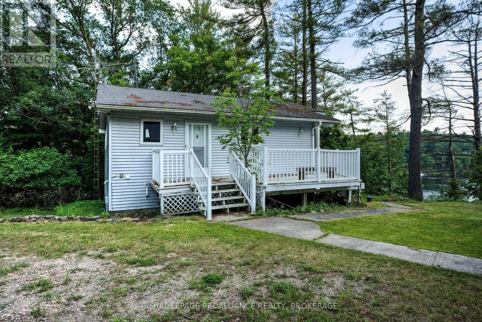 Lakefront retreat on beautiful Opinicon Lake! This property is located at the end of a private lane and includes a 4-season cottage or home, a 2-car detached garage and an additional building that could be used as a storage shed or bunkie. The lot is 1.5 acres in size and offers a private setting with elevated westerly views over the