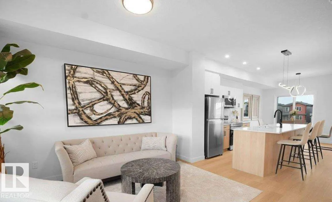 +"PublicRemarks": "Modern multi-level townhome in Juniper at Arbours of Keswick featuring a bright flex room, private patio, and attached double garage. The main floor offers an open kitchen, spacious dining/living areas, powder room, and balcony. Upstairs includes a private primary suite with walk-in closet and ensuite, plus two additional bedrooms and full bath. Landscaping is fully completed for easy living. Close to Movati, river valley trails, top schools, parks, and quick Henday access an ideal low-maintenance option for first-time buyers or investors. (id:62650)"