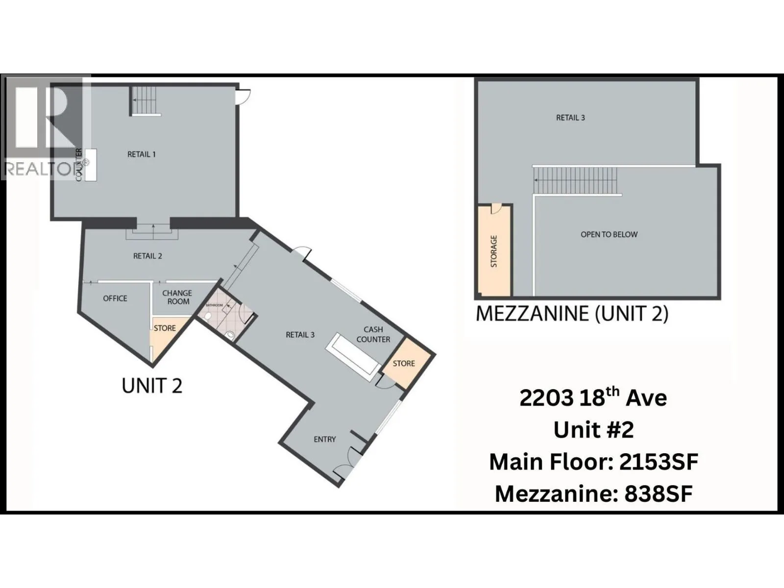 Commercial Space for Lease – Unit#2, 2203 18th Ave, Vernon, BC. Discover an exceptional leasing opportunity in a prime Vernon location. This versatile 2,991 SF space features 2,153 SF on the main floor plus an 838 SF mezzanine, offering flexibility for a variety of business needs. Conveniently located near major amenities—including restaurants, grocery stores, and a coffee shop right across