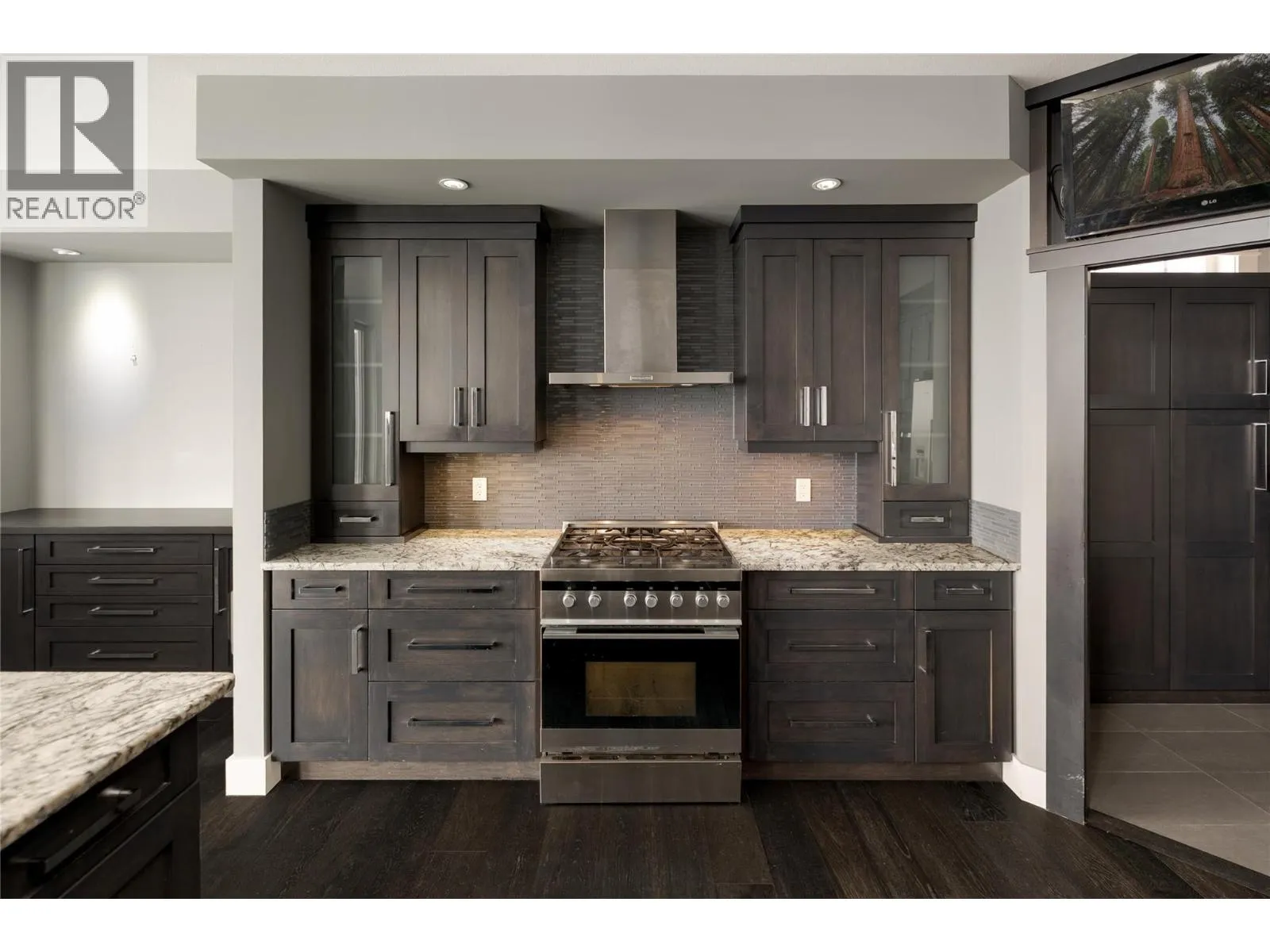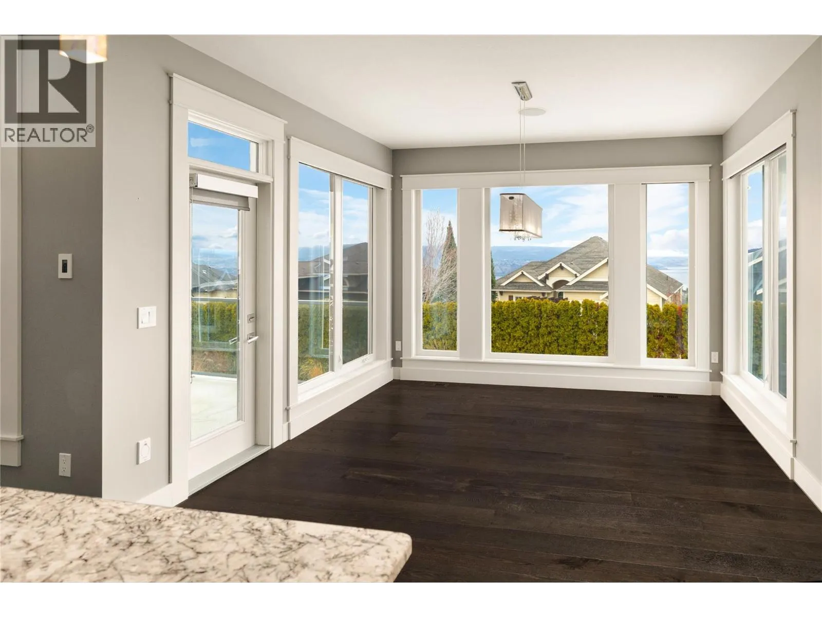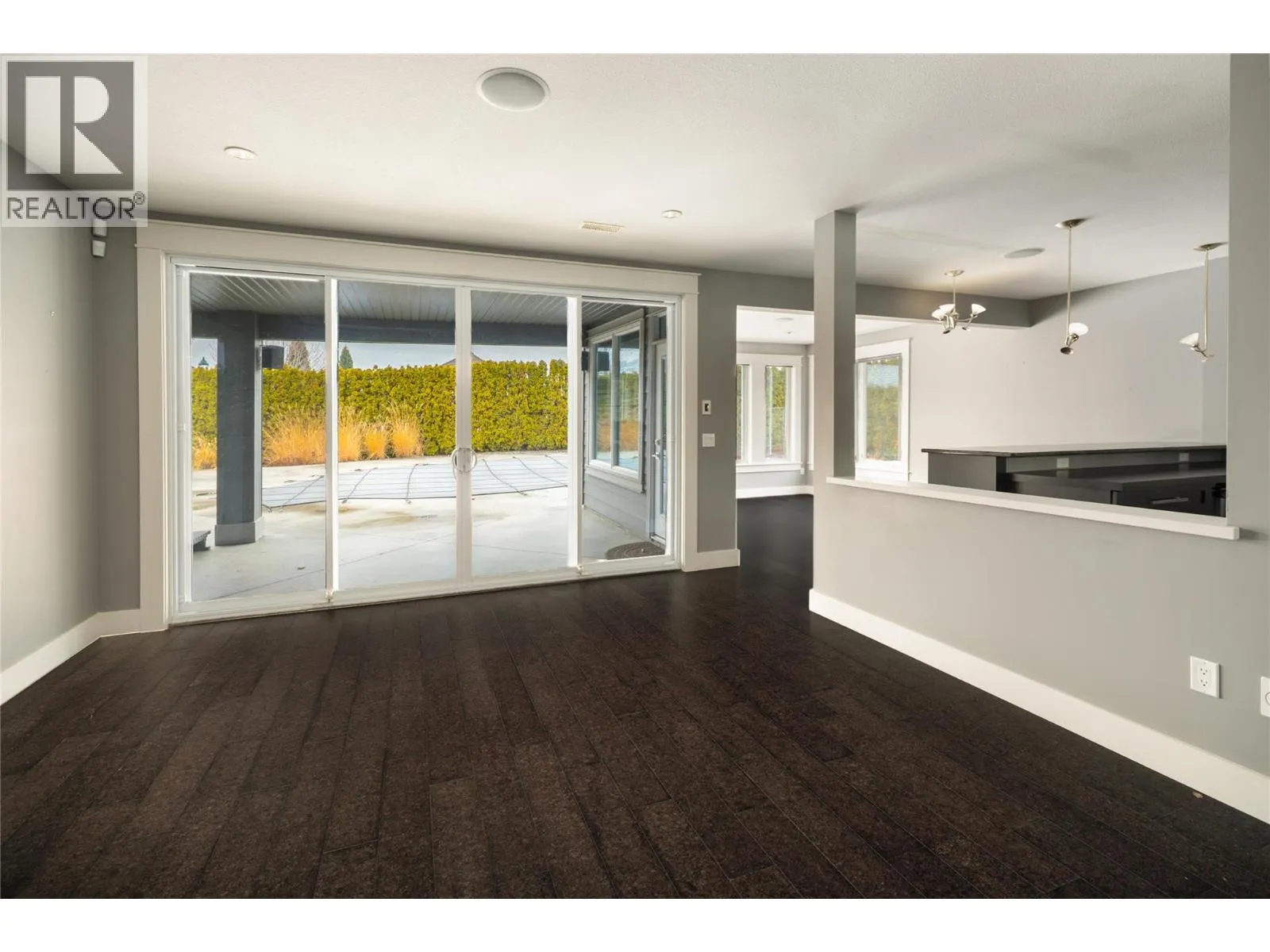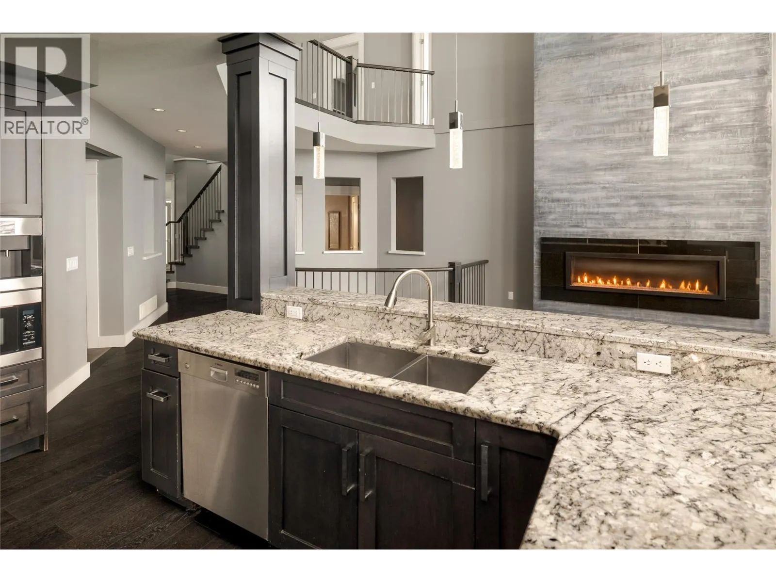 +"PublicRemarks": "Set in one of Kettle Valley’s most established, family-friendly neighbourhoods, this modern residence offers over 4,000 sq. ft. of well-designed living space with exceptional value for growing families. Just minutes to schools, parks, and neighbourhood amenities, the location balances daily convenience with an active lifestyle. Thoughtfully planned across three levels, the home features five bedrooms, four bathrooms, and a dedicated den. Vaulted ceilings, expansive windows, and a floor-to-ceiling fireplace define the main living area, while the granite kitchen is equipped with Fisher & Paykel and Miele appliances, a gas range, convection oven, integrated coffee system, and Bosch dishwasher. The dining area opens to a covered patio with gas hookup, outdoor speakers, and open views—ideal for everyday living and entertaining. The primary suite is located on the main floor with heated ensuite flooring. Hardwood floors, built-in speakers, heated tile in the entry, and accent-lit stairs reflect the quality carried throughout. Upstairs offers two additional bedrooms, while the lower level includes two more bedrooms, a theatre room with tiered seating, wet bar, recreation space, and walk-out access to the yard. A bathroom with exterior access adds poolside convenience. Outdoors, mature hedging frames a private, resort-style setting with a swimming pool, stone water feature, hot tub, and multiple lounging areas—an ideal family home with room to grow in the heart of Kettle Valley. (id:62650)"