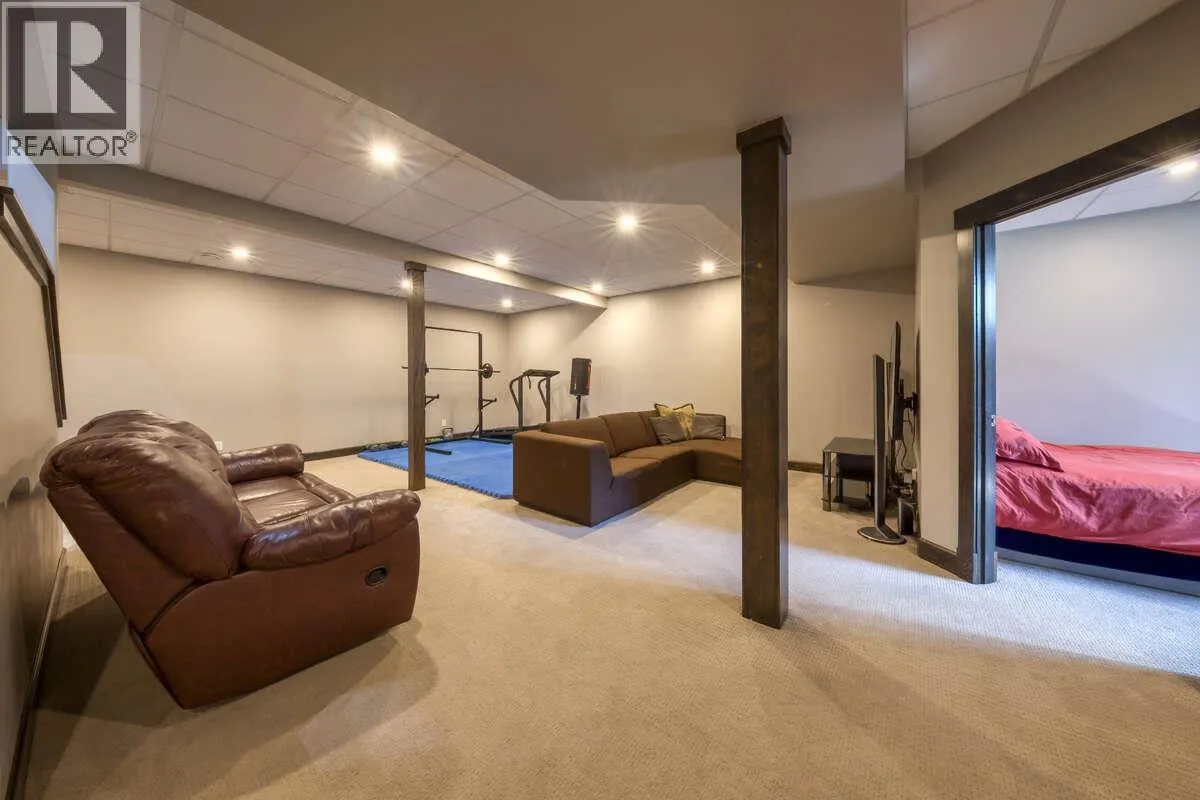 +"PublicRemarks": "This residence boasts a distinctive post-and-beam design, offering both beauty and individuality rarely found in conventional homes. The expansive, covered front deck provides an ideal setting for entertaining guests while enjoying panoramic views of the Rocky Mountains. Designed as an exceptional mountain retreat, the home emphasizes comfort, connectivity, and versatility. Features include soaring vaulted ceilings, elegant hardwood flooring, a chef-inspired kitchen equipped with granite countertops, stainless appliances, and a large island. The main floor’s open layout seamlessly transitions into a great room highlighted by a striking stone fireplace, creating an inviting space for family gatherings or relaxed evenings. The loft level presents a dedicated landing suitable for a sunlit home office or creative workspace, leading to a tranquil primary suite complete with vaulted ceilings and a private balcony. The spa-like, 5-piece ensuite features a jet tub promoting year-round wellness. There’s a beautiful main-floor bedroom with an ensuite. More adaptable spaces provide privacy and flexibility for family members or guests, while the lower level accommodates hobbies, fitness activities & a soothing sauna. In-floor heating and an appointed mudroom further enhance the seamless integration between indoor and outdoor living. Ideal for retirees, active families, or individuals seeking a refined balance of luxury and practicality, and all within a dynamic and picturesque community. (id:62650)"