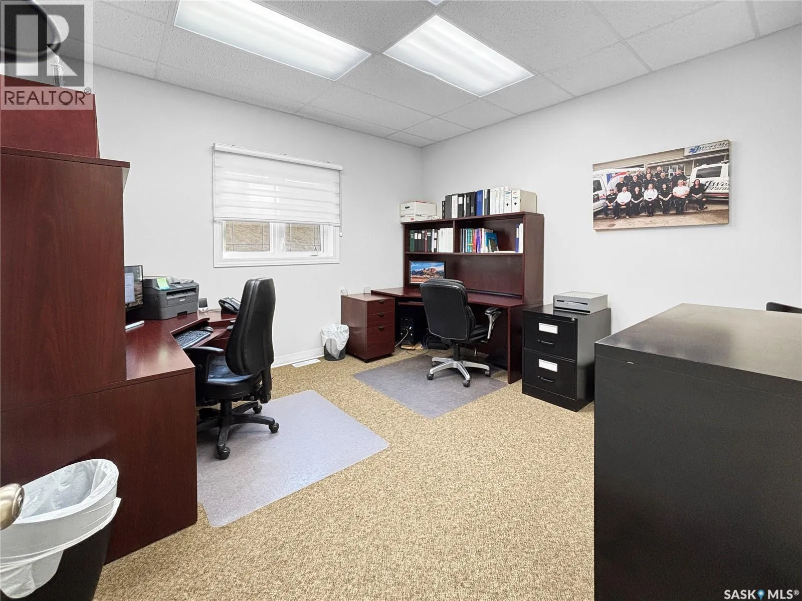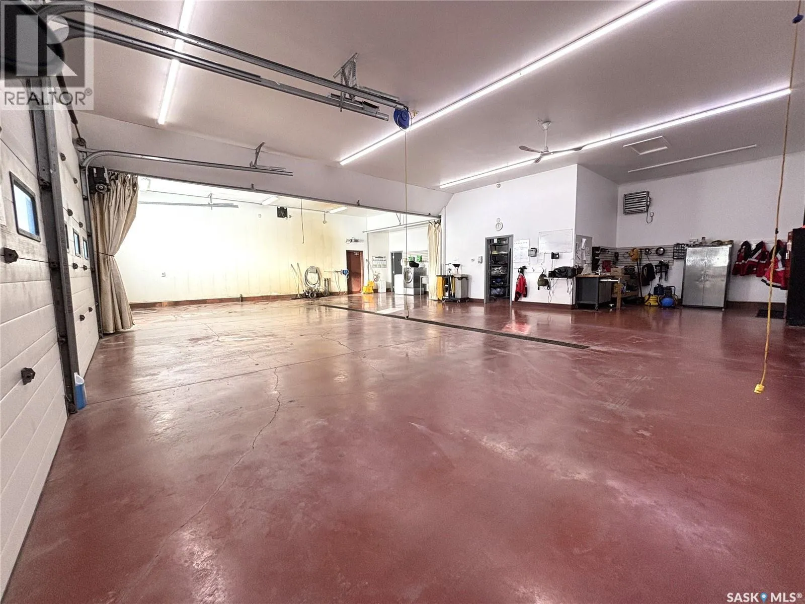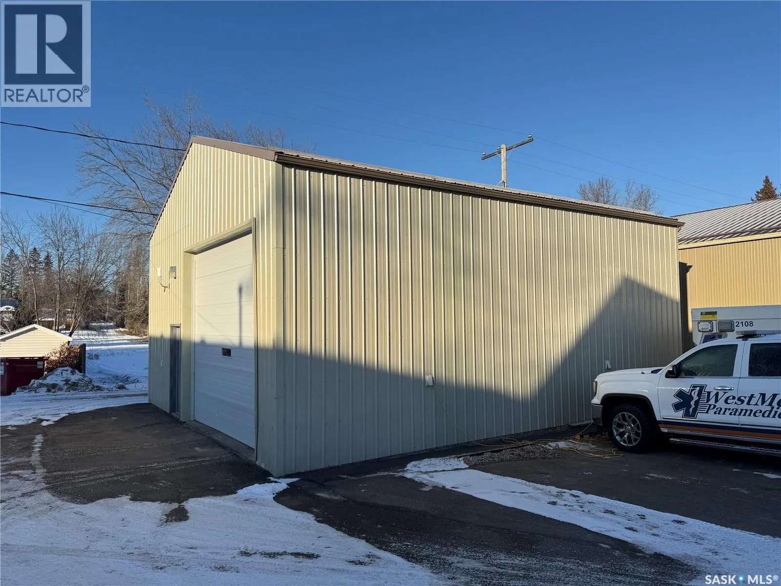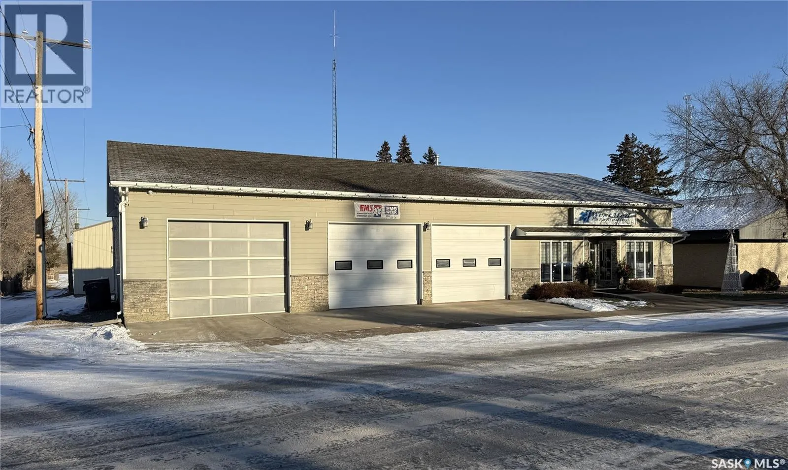 Prime commercial exposure – with approx. 3,500 sq ft, this building was built in 2007 and features a bright reception area, 2 private office areas, file storage room, 2 bathrooms, kitchen area, a conference room and a storage room. 3 garage bays are complete with drains and pit, in floor heat, bathroom with single shower stall, 2 storage rooms, a