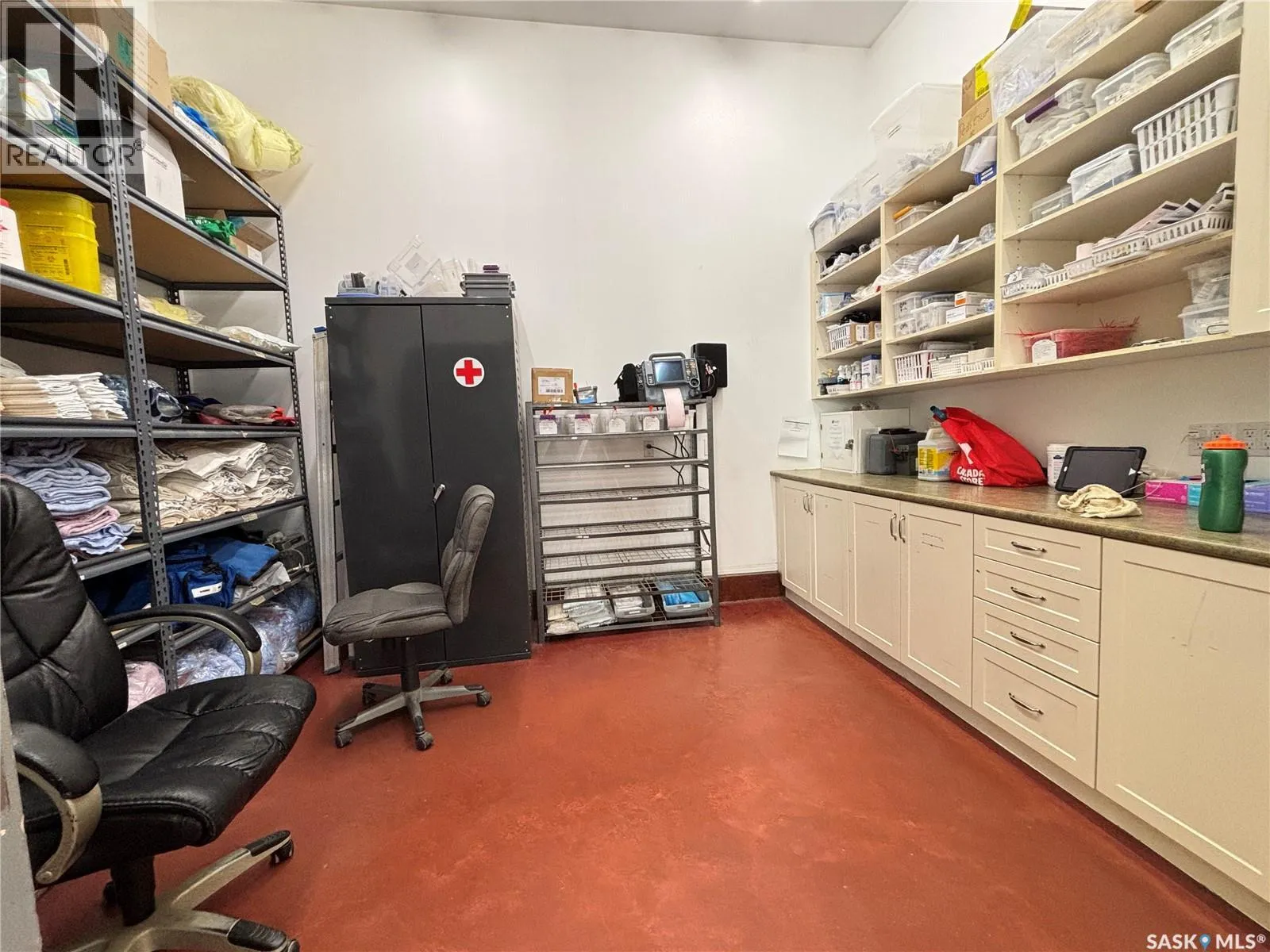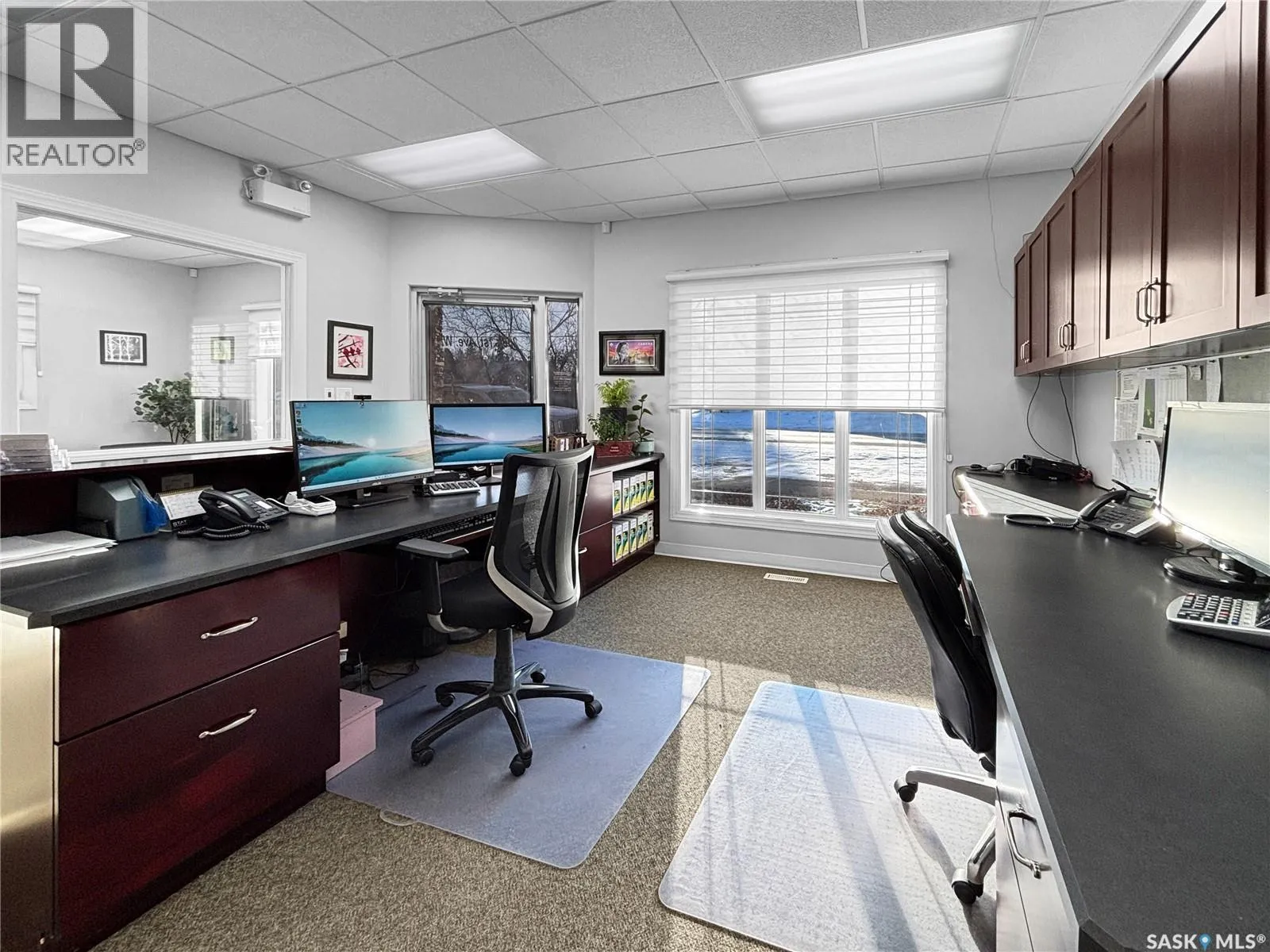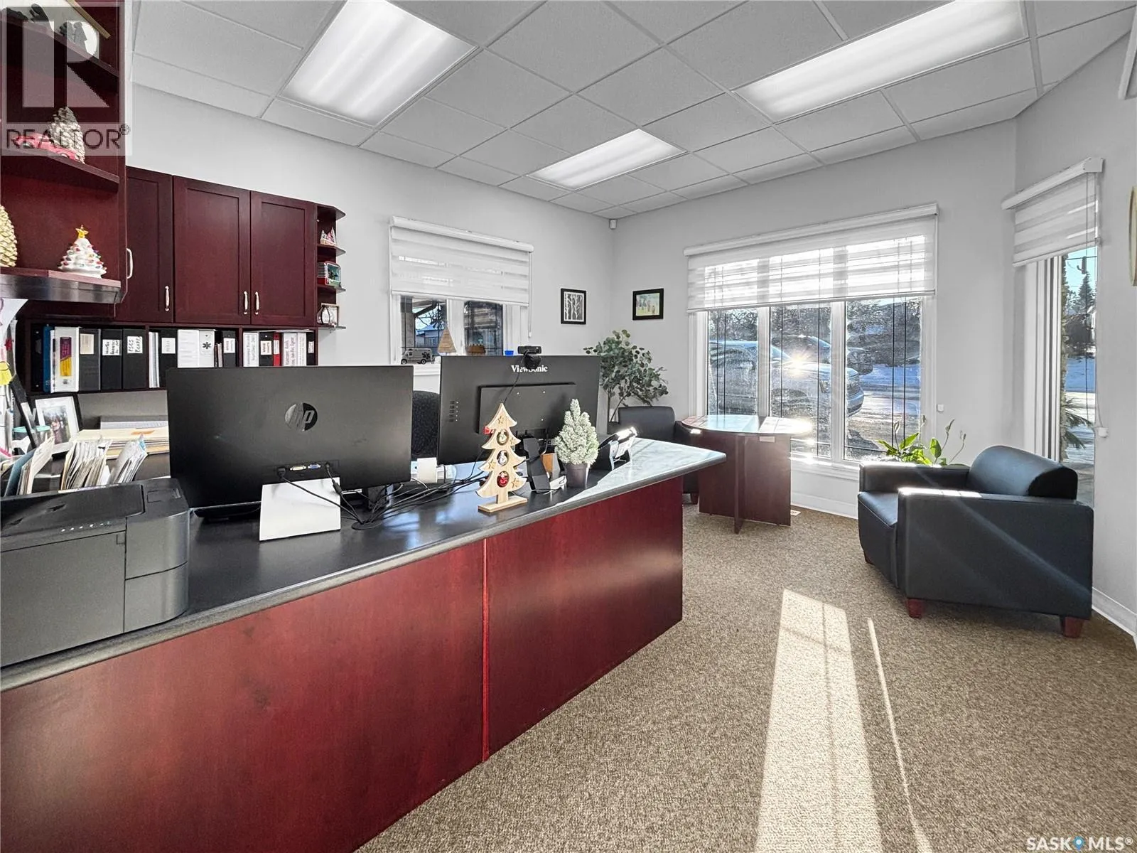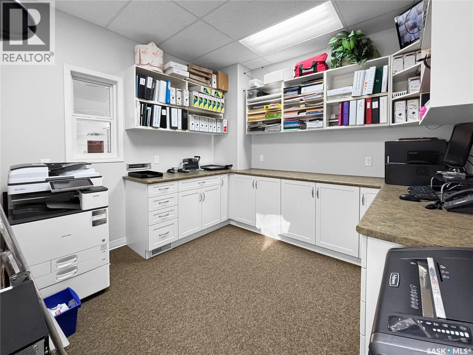 Prime commercial exposure – with approx. 3,500 sq ft, this building was built in 2007 and features a bright reception area, 2 private office areas, file storage room, 2 bathrooms, kitchen area, a conference room and a storage room. 3 garage bays are complete with drains and pit, in floor heat, bathroom with single shower stall, 2 storage rooms, a