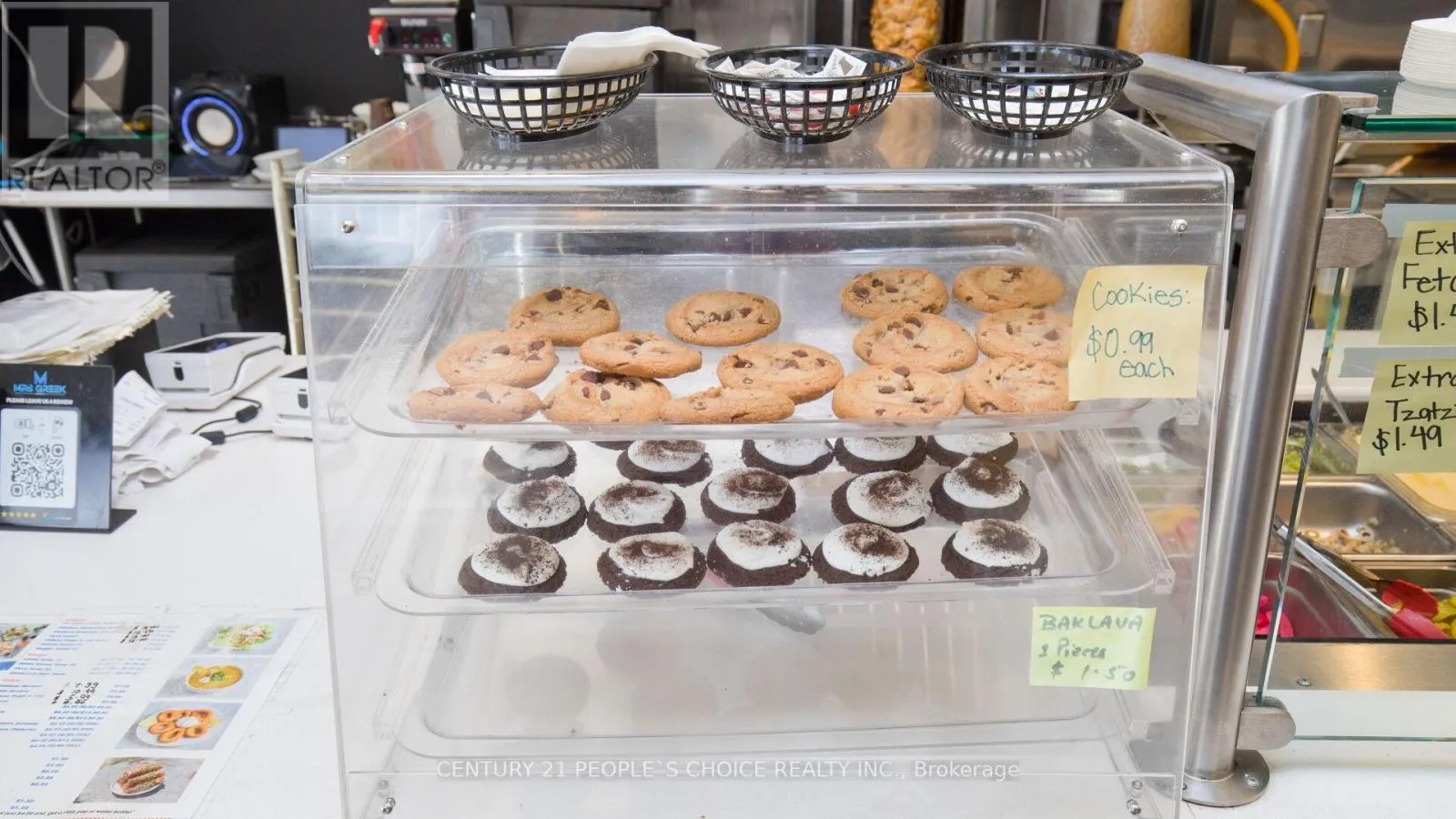 +"PublicRemarks": "***** Excellent Busy Location! ***** Mrs. Greek Express - Mediterranean & Middle Eastern Cuisine Established, profitable shawarma and Mediterranean restaurant in a prime Vaughan location! This well-known business has been operating successfully for over 10 years, serving a loyal customer base with consistent sales.Located in a prestigious business park surrounded by major brand businesses, offices, and industrial clients-ensuring steady walk-in and catering traffic throughout the day.Featuring 32+ indoor seats, this turnkey operation has been fully renovated with a modern, inviting design-perfect for dine-in, takeout, events, and private parties.Highlights:Store size: 1,300 sq. ft.Rent (including T.M.I. & HST): $4,490/month Favourable long-term lease: 5 years + (5-year renewal options)All equipment owned and included in the sale Corner location with excellent street visibility on busy Steeles Ave., near Weston Rd. and Hwy 400Situated in a high-traffic industrial and employment area, walking distance to numerous offices and businesses A great opportunity for families or entrepreneurs to own a well-established and profitable restaurant in one of Vaughan's most sought-after commercial areas. (id:62650)"