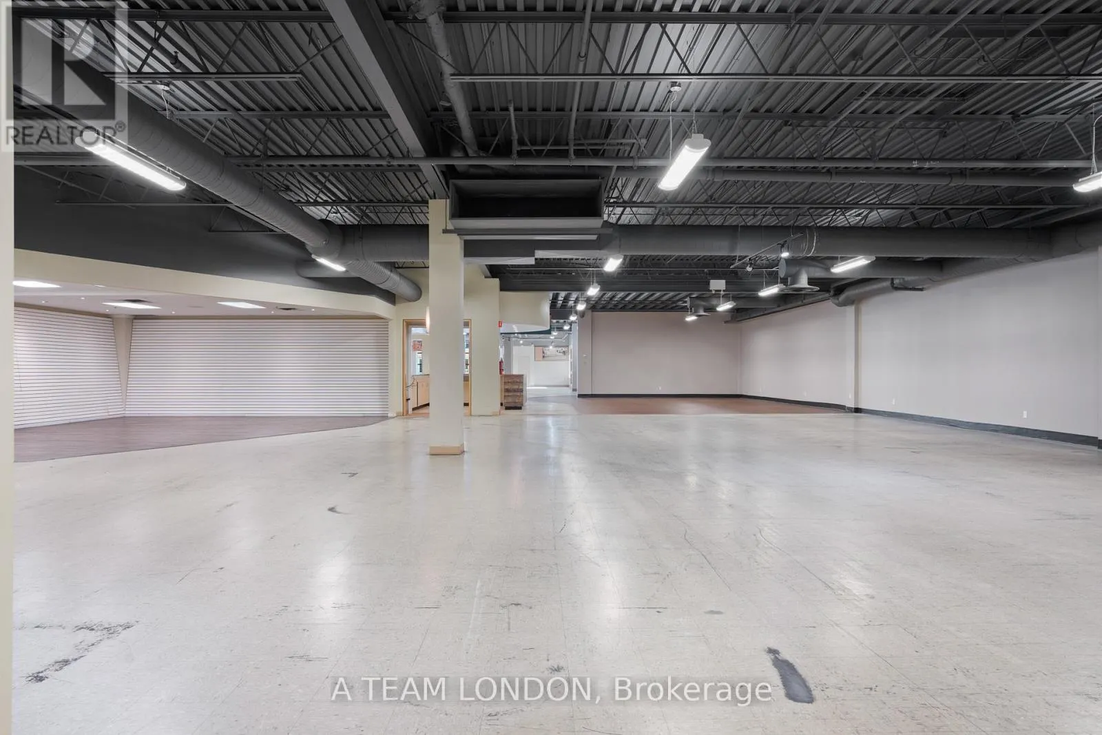 10,400 square feet of warehouse/retail space with excellent street frontage and signage opportunity along busy Adelaide Street South. Average daily vehicle traffic volume of 22,000 vehicles per day. Open concept floor plan with open ceilings, spiral ducts and black sprayed finish. Finishes include slat walls, 2 washrooms, lunch room and customer service desk. 10 feet clear height. Double man doors
