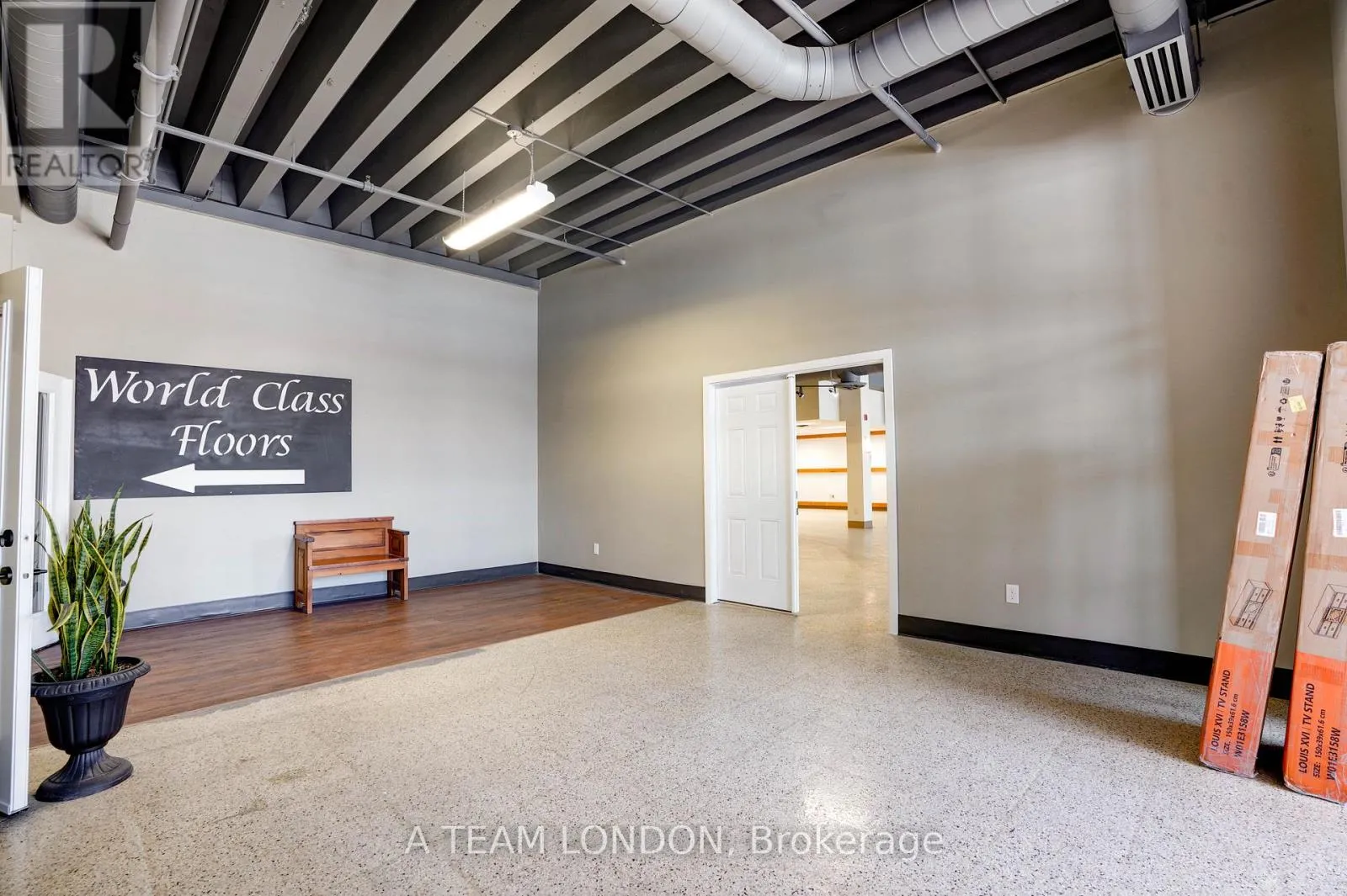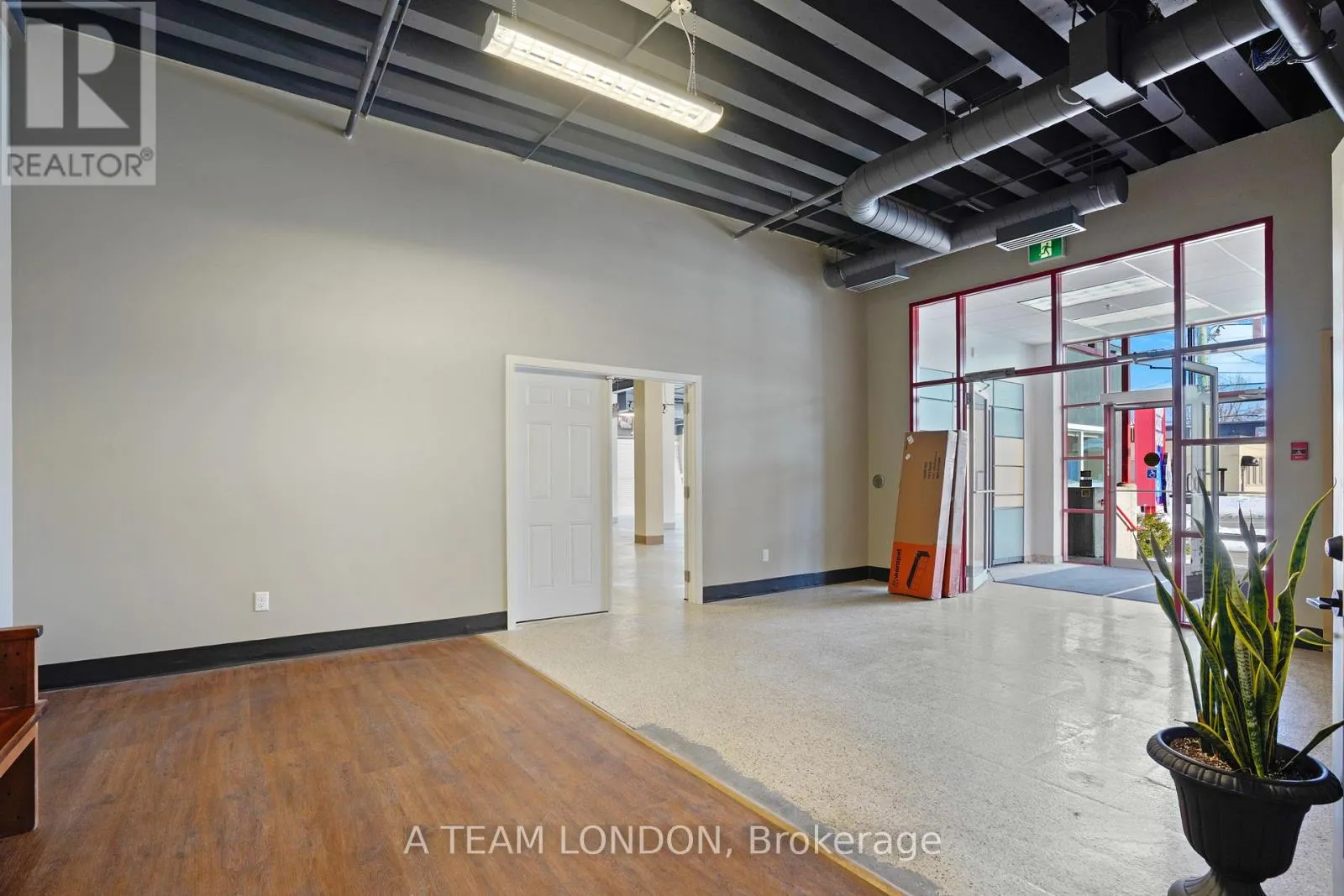 10,400 square feet of warehouse/retail space with excellent street frontage and signage opportunity along busy Adelaide Street South. Average daily vehicle traffic volume of 22,000 vehicles per day. Open concept floor plan with open ceilings, spiral ducts and black sprayed finish. Finishes include slat walls, 2 washrooms, lunch room and customer service desk. 10 feet clear height. Double man doors