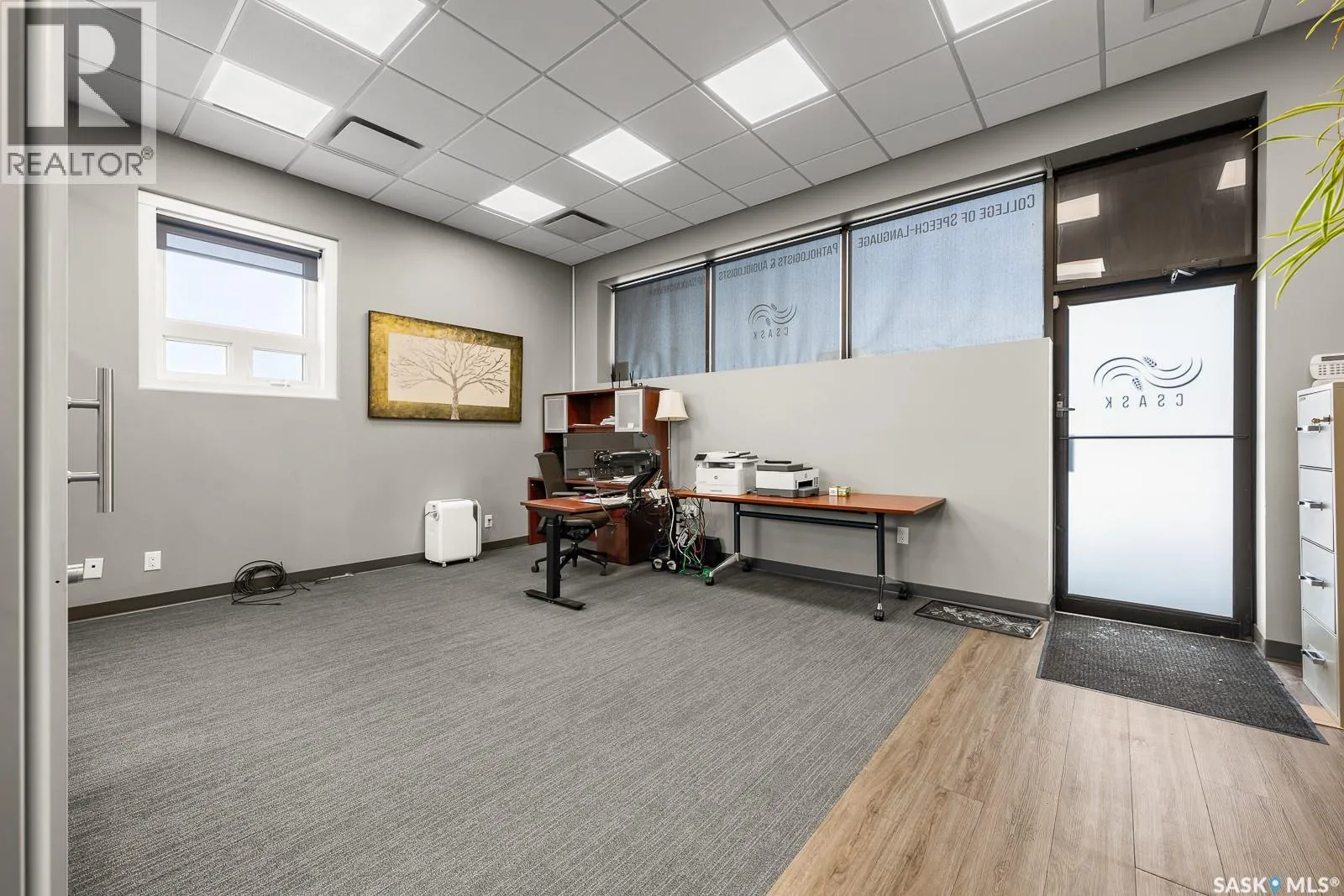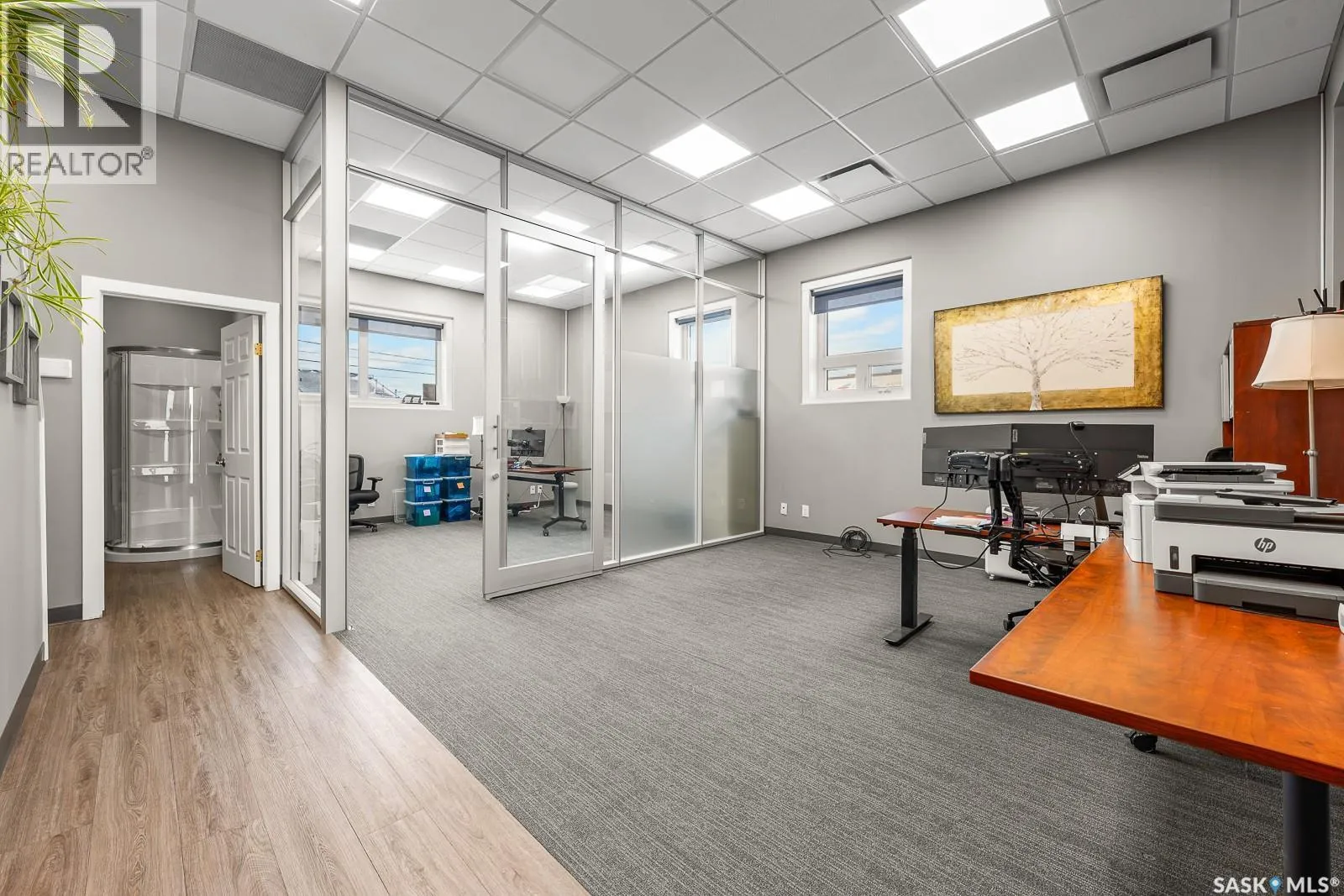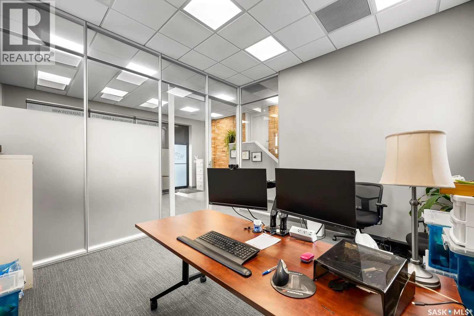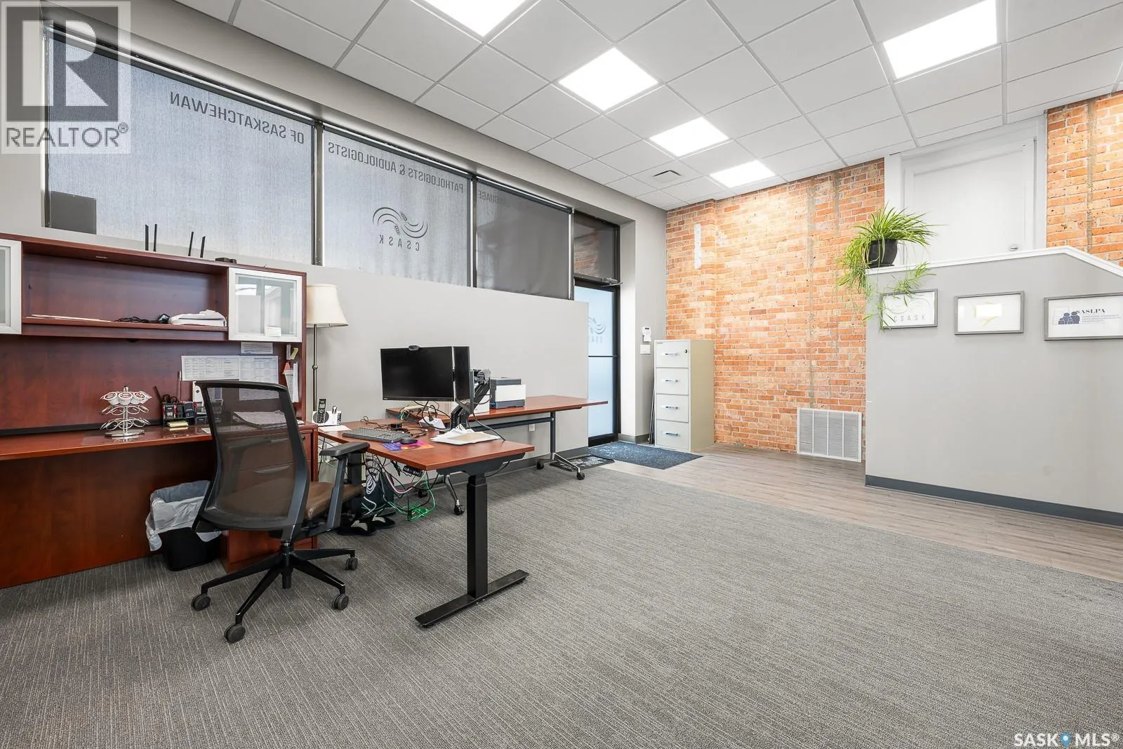 Amazing modern office space located in the sought-after Warehouse District. This unique space boasts its own private entrance and bathroom, offering both convenience and privacy. Inside you will see character meets contemporary design with a striking brick feature wall that adds a touch of warmth and style. Perfectly suited for an office or creative studio, this versatile area can comfortably