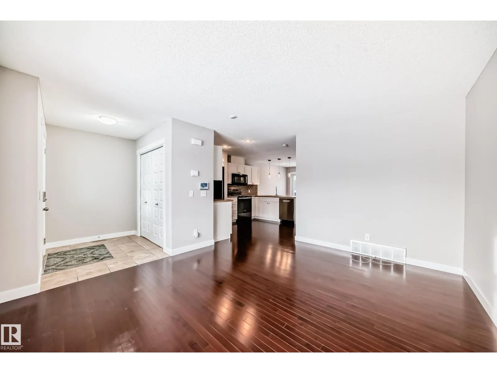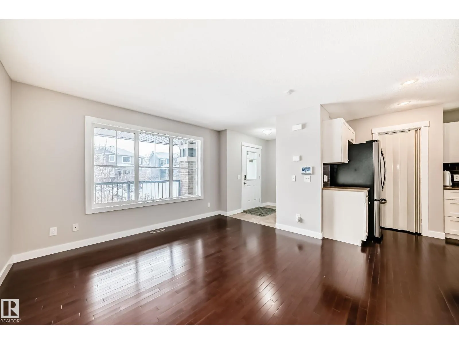 +"PublicRemarks": "Welcome to this huge (1,830+ sqft) beautifully finished Half Duplex situated on a large lot in a quiet cul-de-sac. The main floor features a bright front den, half bath, and an impressive kitchen with quartz countertops, tile backsplash, pantry, and a large island with seating—perfect for gatherings. The living room showcases a fireplace & a feature wall, flowing seamlessly into the spacious dining area. From here, step out onto the two-tier composite deck overlooking the fully fenced SW facing pie lot, complete with a grassed area ideal for outdoor enjoyment. Upstairs, the spacious primary bedroom includes a walk-in closet & spa like ensuite. A versatile bonus room, two additional bedrooms, a 4 pc bathroom, & laundry offer comfort & convenience for the whole family. The fully finished basement (with separate entrance) adds even more living space with a large family room, a fourth bedroom, and 3 pc bath. Attached garage with epoxy floor & AC included! Move in ready! (id:62650)"