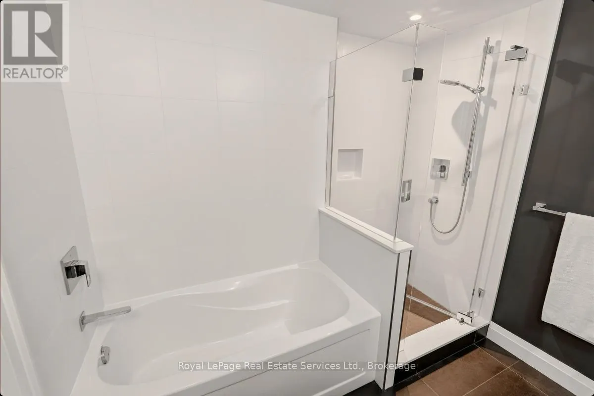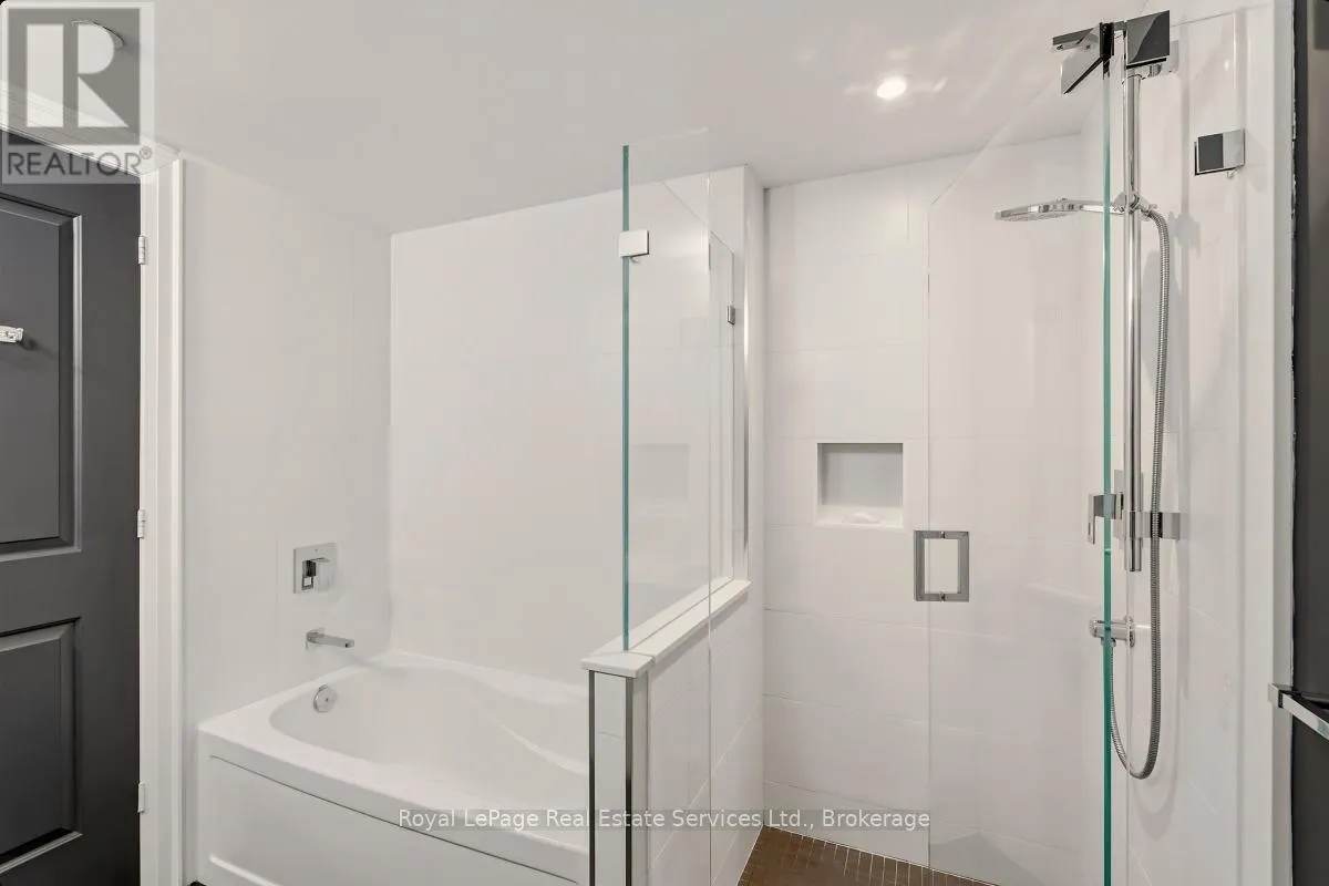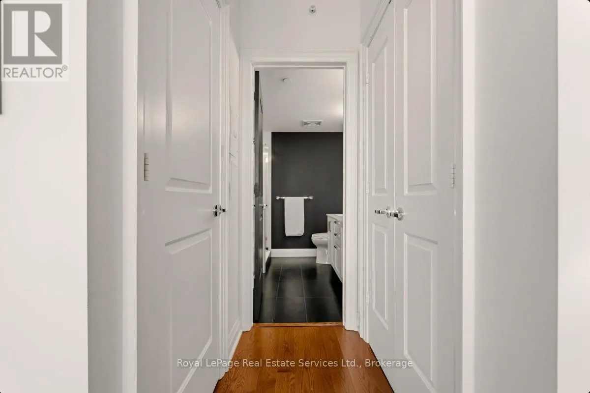 +"PublicRemarks": "Presenting a beautifully updated, nearly 1,200 sq. ft. corner suite in the highly sought-after Bronte Harbour Club. Bathed in natural light, this sun-filled residence offers serene views of mature trees and Bronte Creek, providing exceptional privacy on one of the building's quietest sides. With 9-foot ceilings and expansive windows, the suite feels bright, spacious, and inviting throughout.The well-designed layout features a generous primary bedroom with a large ensuite and his and hers closets with custom organizers. The versatile second bedroom is perfectly suited for guests, a home office, or a cozy sitting area. A second four-piece bathroom, in-suite laundry, and an additional storage room enhance everyday convenience.Residents enjoy 24-hour security and an impressive selection of amenities, including an indoor pool, fitness centre, party room, billiards room, hobby room, and guest suite. Ideally located just steps from Bronte Harbour, Lake Ontario, scenic trails, and an array of boutique shops and restaurants.Two underground parking spaces and a locker are included. Condo fees cover heat, air conditioning, water, full access to amenities, and a Bell Fibe internet/cable package. (id:62650)"