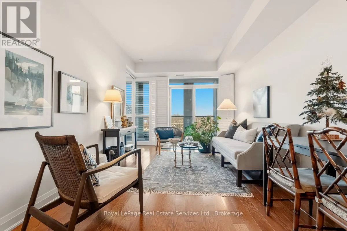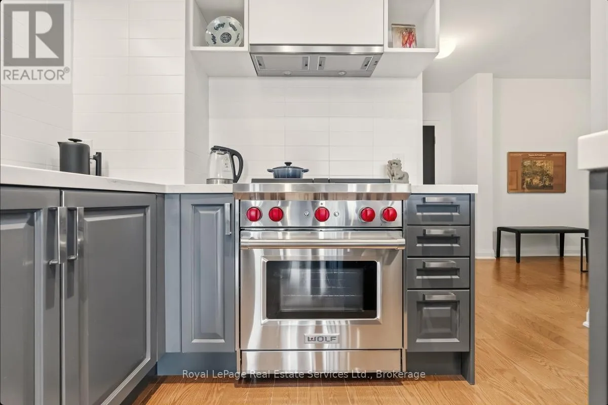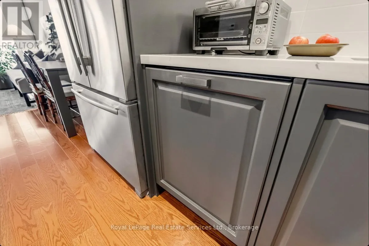 +"PublicRemarks": "Experience refined, resort-style living at The Shores Residences, perfectly situated in the highly sought-after lakeside community of Bronte Harbour. This elegant one-bedroom, plus den, two-bathroom suite-known as The Cavalier-offers over 823 sq. ft. of thoughtfully designed living space, complemented by a spacious 155 sq. ft. terrace. The functional layout showcases floor-to-ceiling windows, soaring 9-foot ceilings, engineered hardwood flooring, and a sleek kitchen featuring a large island, quartz countertops, task lighting, and stainless steel Wolf range and Miele washer/dryer appliances. Residents of The Shores enjoy an exceptional collection of amenities designed to impress even the most discerning buyer, including a 24-hour concierge, fully equipped fitness centre, yoga studio, library, meeting and party rooms, dog wash station, outdoor pool with loungers, sauna and change rooms, BBQ areas, and an outdoor fireplace with gathering spaces. Additional highlights include a wine snug with climate-controlled wine storage, theatre room, games room, and even a car wash. All of this is just steps from charming restaurants, boutique shops, and the marina. Welcome to The Shores at Bronte Harbour. (id:62650)"