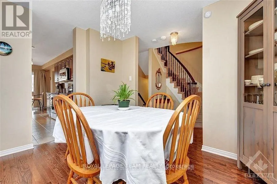 +"PublicRemarks": "FOR RENT available January 1, 2026! Welcome to this bright and well-kept END UNIT 3-bedroom townhome in a convenient Kanata location, just minutes from Highway 417, top-rated schools, parks, trails, grocery stores, and everyday shopping. The main floor features a spacious foyer area and hardwood throughout. The main floor also features a beautiful eat-in kitchen with stainless steel appliances, a living room with a cozy gas fireplace, as well as a formal dining area! Upstairs, you'll find the primary bedroom with beautiful bay windows, a private ensuite and walk-in closet, while the secondary bedrooms are also generous in size along with another full 3-piece bathroom. The builder-finished lower level boasts 7 foot ceilings and provides excellent bonus living space with a large family room, a den perfect for an office or playroom, and another FULL 3-piece bathroom. Enjoy the convenience of the garage parking with inside access, one additional driveway parking space and a FULLY FENCED backyard for added privacy! Tenant to pay all utilities (heat, hydro, water, and hot water tank rental). (id:62650)"