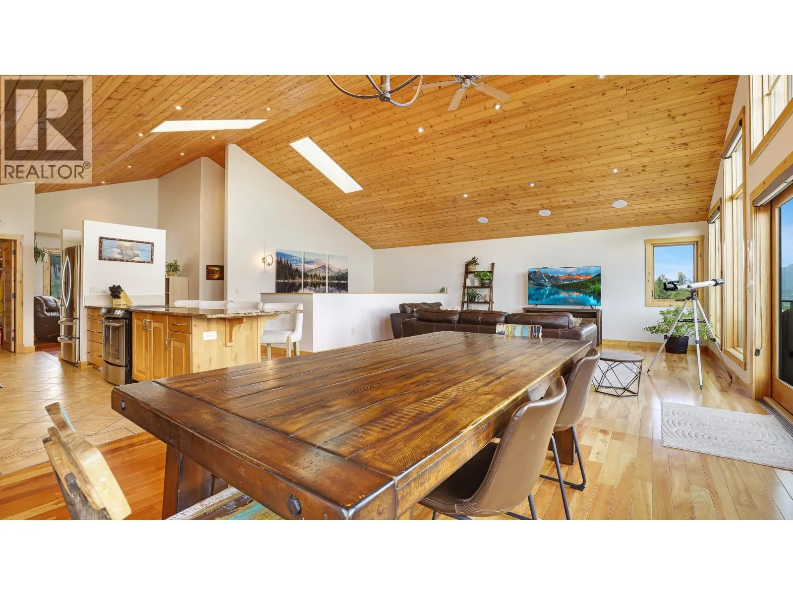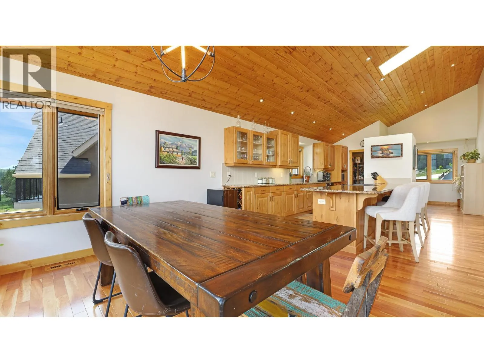 Where quality craftsmanship meets breathtaking views. This stunning 5-bedroom, 3-bathroom home sits in one of Invermere’s most desirable neighbourhoods, offering privacy, comfort, and panoramic vistas of the Rocky Mountains and Columbia Valley—from Radium to Fairmont, with glimpses of Lake Windermere. Thoughtfully designed with high-end finishes throughout, the home features maple hardwood flooring, vaulted alder ceilings with skylights, and large-format ceramic