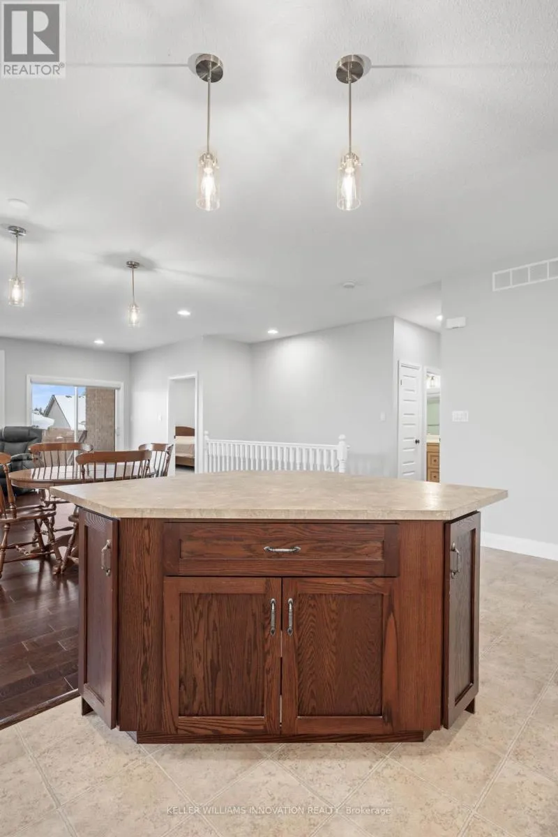 +"PublicRemarks": "Welcome to a home that truly defines elegance and comfort. This stunning 6-bedroom executive residence offers over 4,300 sq. ft. of beautifully finished living space, close to Waterloo, offering small town charm. The impressive curb appeal sets the stage - a stone aggregate double driveway framed by lush perennial gardens leads to a welcoming covered porch. Step inside to a grand foyer featuring 17' ceilings with pot lights and 18x18 marble flooring that continues through the entrance and kitchen, setting a tone of timeless sophistication. The main level blends functionality and style with a gourmet kitchen showcasing granite countertops, top-of-the-line stainless steel appliances, and a seamless flow to the dining and family rooms. Hardwood floors, crown moulding, and recessed lighting accentuate every detail, while the family room's gas fireplace and floor-to-ceiling windows with automatic curtains create a warm, inviting atmosphere filled with natural light. Upstairs, the spacious primary suite offers a serene retreat with a luxurious 6-piece spa ensuite featuring a Jacuzzi tub, glass shower, and a custom-built walk-in closet. Three additional bedrooms provide large custom closets with 8' doors, while the fourth bedroom enjoys its own private ensuite. A five-piece main bathroom, upper-level laundry with sink, and a generous linen closet complete this level with practicality and charm. The finished lower level adds over 1,400 sq. ft. of living space, boasting 9' ceilings, a separate garage entrance, a lounge with a new stone feature wall, a full kitchen, 2 bedrooms, and 3-piece bath - perfect for guests or in-law accommodation. Outside, enjoy a fully fenced backyard with a stone patio, heated on-ground pool, and new deck - ideal for gatherings with family and friends. Nestled on a deep lot in a sought-after neighborhood, this custom home combines craftsmanship, luxury, and lifestyle - a perfect place to call home. (id:62650)"