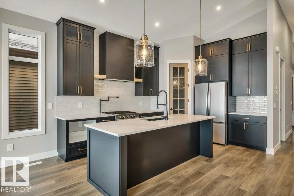 +"PublicRemarks": "Introducing Ellison on Eastgate—where craftsmanship meets countryside romance. This 4 bedroom bungalow by Danson Custom Homes, complete with a HEATED oversized TRIPLE GARAGE, rests against unobstructed prairie views in sought-after Erin Ridge. More than 2,646+ sq ft of living space is wrapped in oak longboard flooring, warm wood textures, and calming linen tones. The open concept main floor draws you in with a stone gas fireplace and an exquisite kitchen with designer appliances, custom hood range, quartz counters, and an island that anchors the sunlit dining space. A secluded covered patio looks out to quiet country horizons. The gracious primary retreat features panoramic prairie views, walk-through dressing room, and spa-like 5pc ensuite. Downstairs, a FF basement reveals a timeless family room with another stone fireplace, 4pc bath, and three generous bedrooms. Complete with wet bar, Bluetooth audio, main floor laundry & mud room, AC. Last developed lot on the street—an opportunity not to be repeated. (id:62650)"
