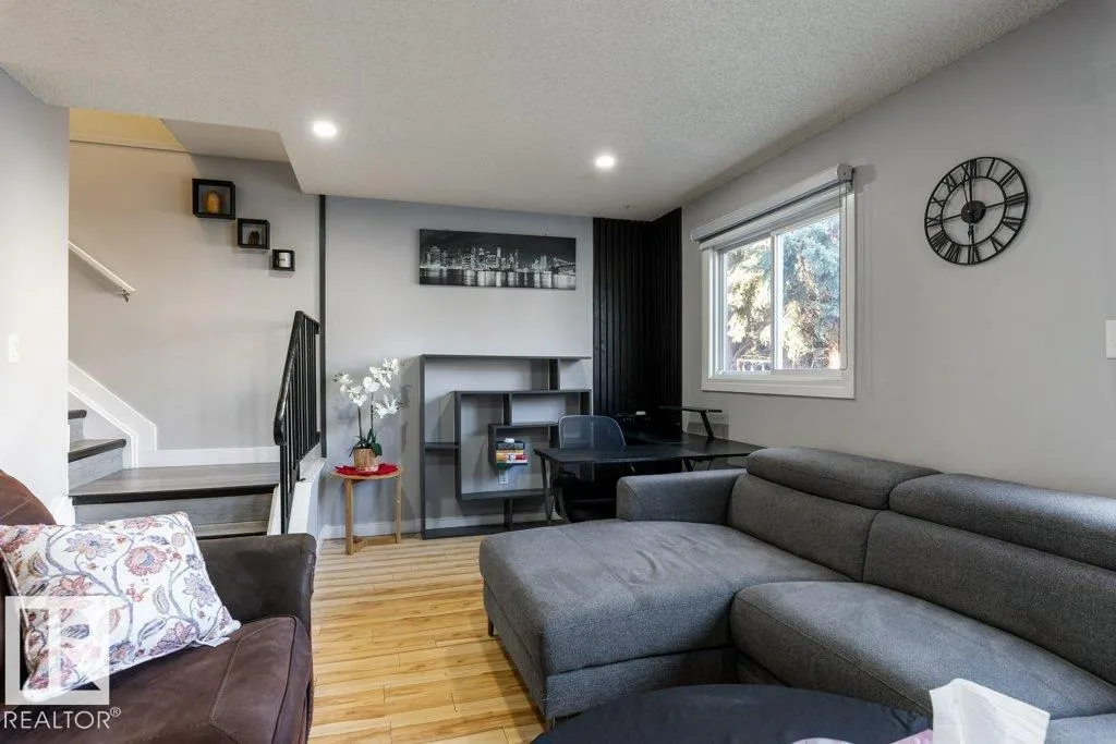 +"PublicRemarks": "Excellent opportunity for first-time buyers or investors! This beautifully updated 3-bedroom, 1.5-bath townhome offers comfort, convenience, and great value. The complex has recently seen major upgrades including new windows, patio doors, shingles and exterior doors. Inside, you’ll love the modern kitchen with quartz countertops, high-efficiency furnace (2019) and stylish finishes like ceramic tile and vinyl plank flooring upstairs. Both bathrooms have been tastefully upgraded—the upstairs features dual sinks and a stunning walk-in shower, while the main floor 2-piece bath adds a fresh modern touch. The bright living area opens to a private fenced backyard with a deck, perfect for relaxing or entertaining. Located in a family-friendly community close to schools, parks, shopping, bike paths, and public transit, with quick access to the Anthony Henday and downtown bus routes. Move-in ready—this home truly has it all! (id:62783)"