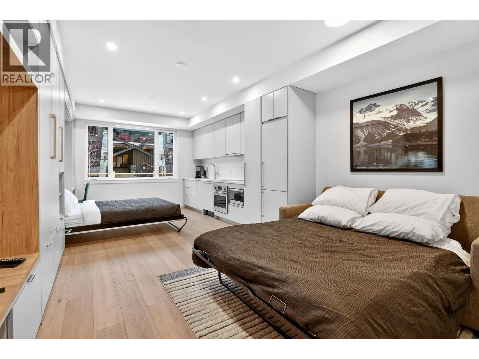 Welcome to modern mountain living in The Crescent situated at the base of Red Mountain Resort. This thoughtfully designed ground level compact studio apartment is turn-key, whether you are looking for a smart investment or to escape to your own mountain basecamp. Newly built in 2024 it offers smart use of space which doesn’t skimp on function and comfort. This