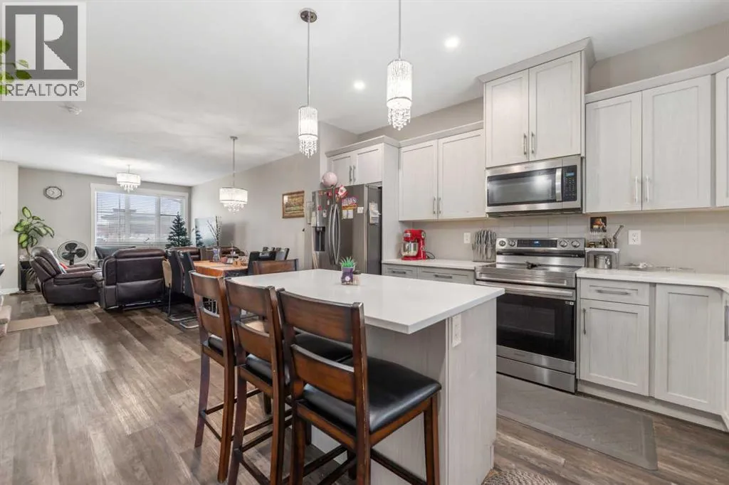+"PublicRemarks": "NO CONDO FEE! Welcome to this stunning and spacious home located in the vibrant community of Skyview Ranch, offering immediate possession. The beautiful kitchen features ample cabinetry, quartz countertops, and a large central island, flowing seamlessly into the dining area with stylish built-in shelving. Upstairs, you’ll find a generous primary bedroom with a 3-piece ensuite and walk-in closet, along with two additional bedrooms, a 3-piece main bathroom, and the convenience of an upstairs laundry room. The sunny, south-facing fully fenced backyard is perfect for relaxing or outdoor entertaining. A double detached garage with access from the paved back alley completes this home. Ideally located close to shopping, parks, schools, and dining, with quick access to Stoney Trail, Deerfoot Trail, Calgary International Airport, and CrossIron Mills Mall.This stylish 2-storey home offers excellent value with no condo fees in a fantastic location. Don’t miss the opportunity to make it your own! (id:62650)"