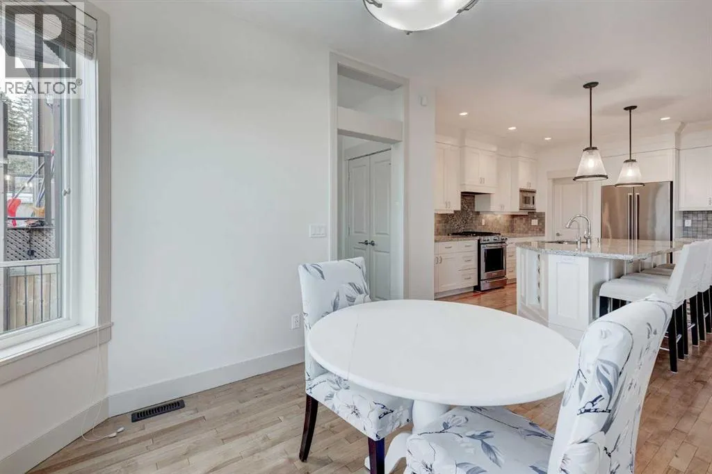 +"PublicRemarks": "Step into this stunning two-storey home located in the inner city area of Shaganappi. Throughout the home, fresh paint and brand-new carpet elevate the overall look and feel, making it truly move-in ready. As you enter, you'll be greeted by vaulted ceilings and a spacious foyer that sets the tone for the rest of the home. The main level features beautiful hardwood floors and an open kitchen filled with light. This kitchen is a chef's delight, boasting a large island with granite countertops, breakfast bar seating, ample counter and storage space, a gas stove, stainless steel appliances, and a pantry. From the kitchen, you’ll find a bright, spacious living room accentuated by a cozy fireplace with built-in shelves and storage, large windows, and numerous pot lights, creating a warm and inviting atmosphere. The main floor also boasts a formal dining room, perfect for family gatherings, a mudroom leading to the back deck, and a 2 piece bathroom completes the main level. Upstairs, the large primary bedroom is a true retreat with vaulted ceilings, a walk-in closet with built-in organizers, and a spacious five-piece ensuite featuring a soaker jet tub, double vanity, stand-up shower, and generous counter and storage space. Three additional bright bedrooms provide ample space for family or guests, and all bedrooms are serviced by a convenient upper floor laundry room with storage. The finished basement is designed for entertainment and versatility, featuring a large wet bar with plenty of counter and cupboard space, a sink, and its own fridge and dishwasher. The basement also includes a family room with abundant space for various activities and a fifth and final bedroom with an ensuite bathroom, perfect for guests or a home office. This home also enjoys the benefit of 2 furnaces and 2 air conditioning units, ensuring ultimate control over the temperature. The exterior of the home is equally impressive, with a low-maintenance backyard that includes a large wood deck, a concr ete patio, and a landscaped grass area surrounded by a garden, providing a private and serene outdoor space. The double detached heated garage with garage door controls opens to the back alley, ensuring convenience and security. Located in the desirable Shaganappi neighbourhood, this home offers an unbeatable location. Just steps from an LRT station and the Shaganappi golf course, it is also close to schools, parks, shopping options including a Walmart, and the vibrant 17th Avenue. The proximity to downtown Calgary and the Bow River, combined with easy access to the rest of the city via Bow Trail, makes this an ideal home for those seeking both convenience and luxury. Don't miss the opportunity to make this exceptional property your own. Don't miss the opportunity to make this freshly updated and beautifully maintained property your own. Book a showing today and experience the best of Calgary living. (id:62650)"