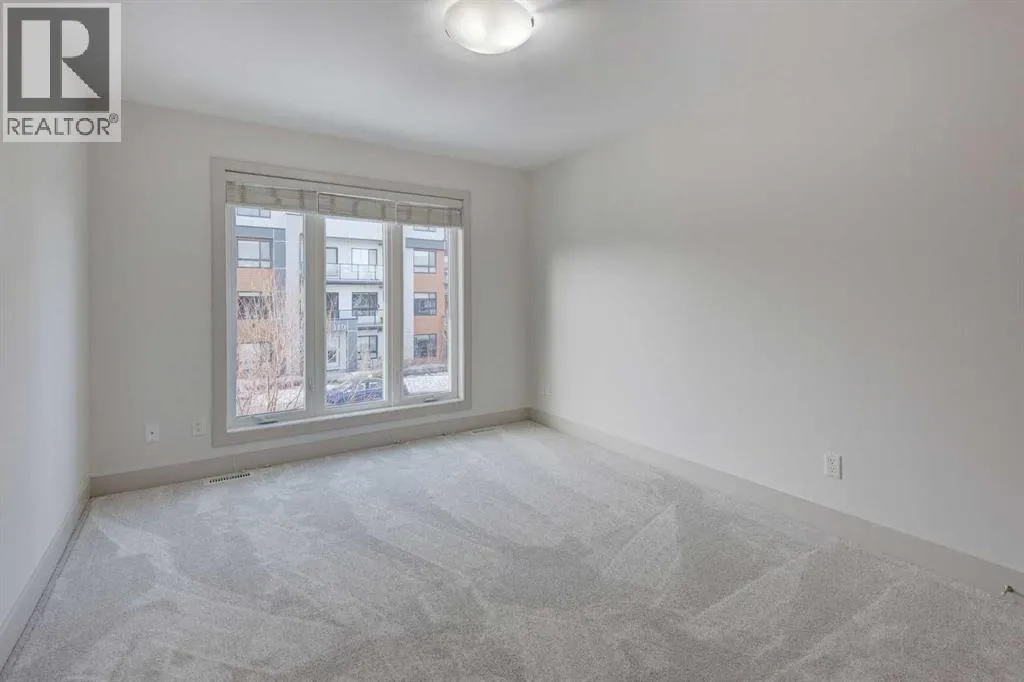 +"PublicRemarks": "Perched at the highest point with the best views in the exclusive Crown Park development in Shaganappi, this sophisticated end-unit townhome offers a rare blend of urban convenience, contemporary design, breathtaking skyline views from 3 levels and over $20,000.00 in upgrades — all just minutes from downtown Calgary. Nestled in a vibrant new community steps from walking paths, parks, the Bow River, and LRT access, this home places the best of the city and nature right at your doorstep. From the moment you arrive, this residence sets itself apart. A private east-facing front patio overlooks the community’s expansive green space and beautifully maintained raised garden beds — an inviting introduction to the lifestyle that awaits. Inside, the entry-level welcomes you with a flex space ideal for a home gym, office, or studio, as well as access to a private double attached garage with additional storage. Ascend to the main living level, where soaring ceilings and a sun-drenched open floor plan define the heart of the home. The chef-inspired kitchen features a premium stainless steel appliance package, sparkling quartz countertops, and a waterfall island. A stylish adjacent bar area, complete with wine fridge and additional cabinetry, is perfect for entertaining and crafting your signature cocktail. The dining room serves as the hub for hosting memorable meals, while the spacious living room centers around a sleek linear gas fireplace ready with TV wall mount already installed. Step out onto the east-facing balcony, your second outdoor sanctuary, overlooking the community’s tranquil green space—perfect for morning coffee or evening unwinding. On the upper level, discover three well-appointed bedrooms, a bonus flex area, and convenient upper laundry. The primary suite features a 4-piece ensuite and walk-in closet, while two additional bedrooms share a beautifully designed 3-piece bath. The central bonus area offers a perfect spot for a kids’ play area, study nook, or cozy reading lounge. But the true showstopper awaits above — the private rooftop patio. With views of Calgary’s downtown skyline to the east and glimpses of the west, this incredible outdoor living space is your personal retreat to watch both sunrises and sunsets in style. This energy-efficient home is thoughtfully designed and EnerGuide-rated, seamlessly blending luxury with sustainability. Located in a community that connects urban living with natural beauty, you’ll enjoy access to the Douglas Fir and Quarry Trails, dog-friendly parks, boutique fitness studios, and some of Calgary’s top dining and entertainment spots. With Bow Trail and the LRT just minutes away, you're effortlessly connected to downtown and the mountains alike. Whether you're entertaining guests, working from home, or escaping to the rooftop to soak in the skyline, this Crown Park masterpiece offers an elevated lifestyle in one of Calgary’s most dynamic new communities. (id:62650)"