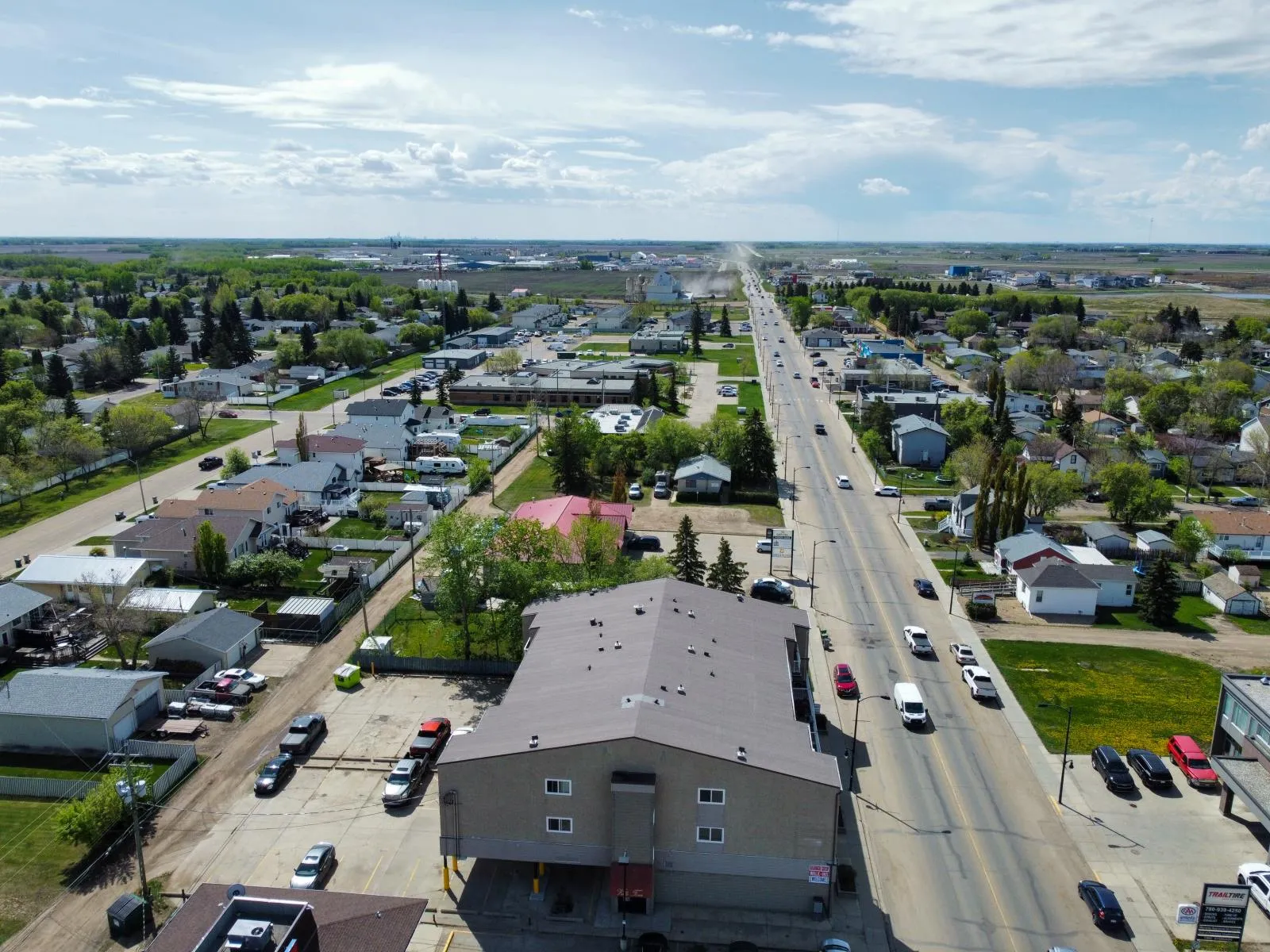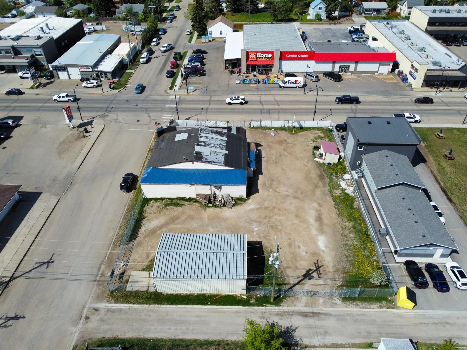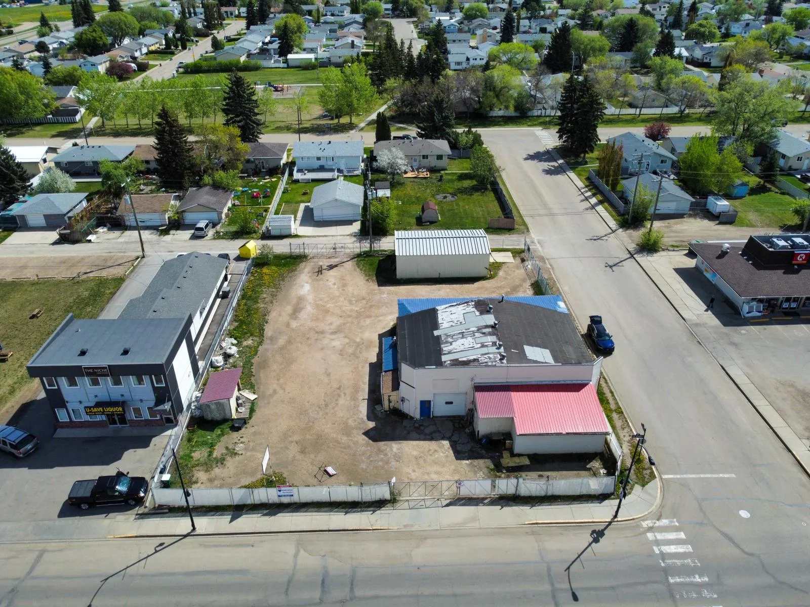 Prime Commercial Property for Sale in Morinville. A unique opportunity to acquire a high-visibility commercial property located on the bustling Main Street of Morinville. This former bottle depot sits on a strategically positioned corner lot with excellent exposure, benefiting from over 5,265 vehicles passing daily. The expansive lot spans 150’ x 127’, offering ample space for redevelopment potential. With dual