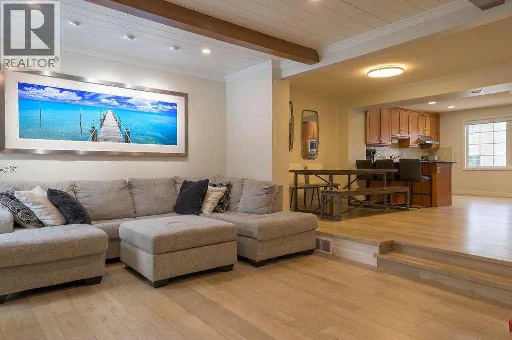 +"PublicRemarks": "LOCATION! LOCATION! LOCATION! A gorgeous and PROFESSIONALLY renovated Two Story, FOUR BEDROOM, END UNIT backing onto the BOW RIVER GREENSPACE with CENTRAL AIR CONDITIONING & HEATED SINGLE CAR ATTACHED GARAGE!! The main floor has been opened to allow for easy transition between the modern kitchen (with top-of-the-line appliances), the spacious dining room and the living room complete with new custom ceiling beams, shiplap ceiling detail with new pot lights as well as a cozy fireplace. The wide garden doors allow for loads of light to shine in and opens out to a 19’ x 10’ deck with newly installed artificial turf & gas bib for bbq which overlooks the RIVER, BIKE and WALKING PATHS that lead you to CAFES, EDWORTHY PARK & DOWNTOWN! The floors have been completely redone with new luxury vinyl planking. Baseboards have been recently replaced throughout the entire condo as well as the home has been recently professionally painted. On the way to the second level is a custom built-in desk making excellent use of space and there are matching custom cabinets at the top of the stairs. The second floor features a spacious primary bedroom with a new feature wall, renovated closet with barn door, a 3-piece ensuite, plus two additional bedrooms and a 4-piece bath. The lower level has a new RARELY seen, CUSTOM BUILT 4TH BEDROOM & 3-PIECE BATH for your guests as well as a laundry area with CALIFORNIA CLOSET & NEW WASHER & DRYER. There are just too many new upgrades to mention in these public remarks so we’ve included a DETAILED LIST OF NEW UPGRADES IN THE SUPPLEMENT SECTION OF THIS LISTING.Don’t miss out on this fantastic home with a PERFECT LOCATION and FLOOR PLAN!! (id:62650)"