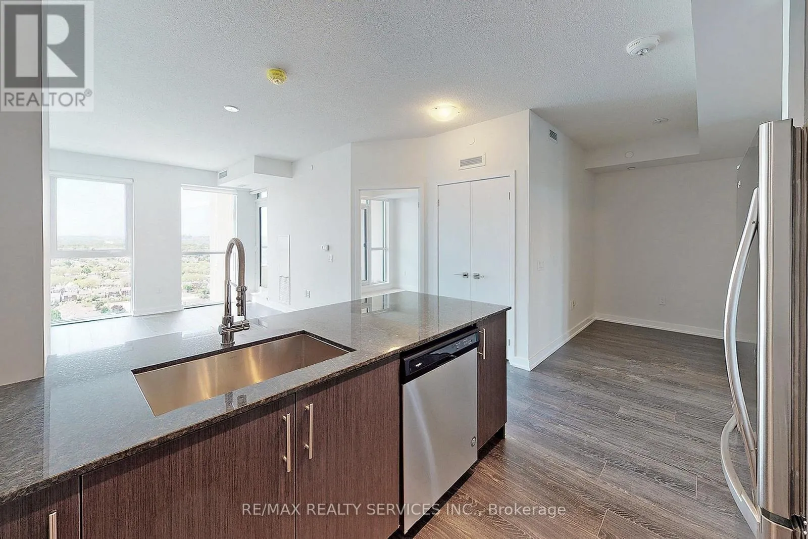 +"PublicRemarks": "Brand New & Never Lived In. Bright, Spacious & Airy 2 Bedroom, 2 Bath Corner Unit Steps From Square One! Premium & Modern Finishes Throughout. Open Concept Floorplan. Stunning Kitchen With Stone Countertop Island, Integrated Appliances, Backsplash & Overhead Lighting. Combined Living/Dining Spaces Featuring Wide-Plank Laminate, Large Windows & Walk-Out To Balcony. Primary Bedroom With Tile Flooring, Glass-Enclosed Stand-Up Shower & Vanity With Storage. 2nd Bedroom Featuring Large Windows, Large Closet & Laminate Flooring. Highly Desirable Area. Minutes to Transit, 403, 401, Walmart, Whole Foods, Restaurants, Shopping, Community Centre, Parks & Theatres. Move-In Ready! 1 Parking Space & 1 Locker. (id:62650)"