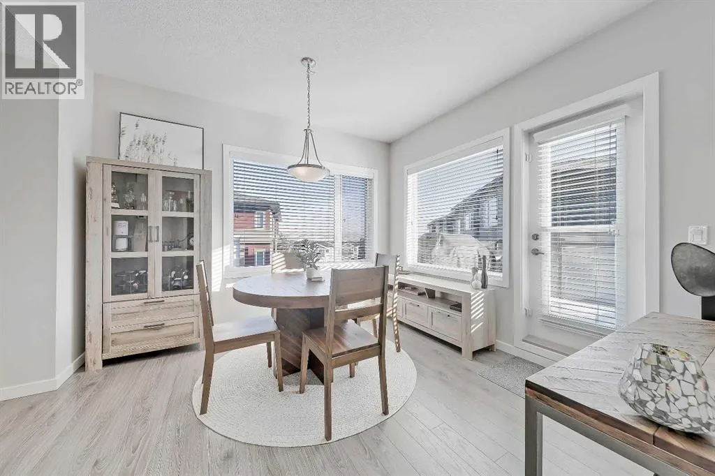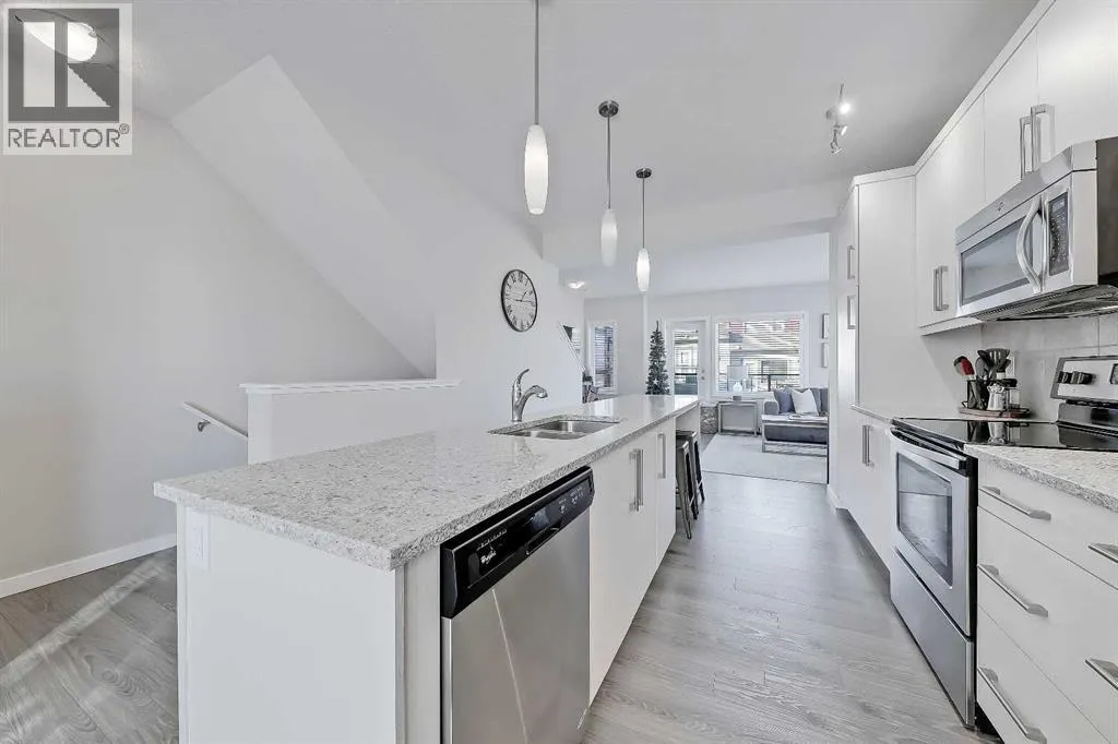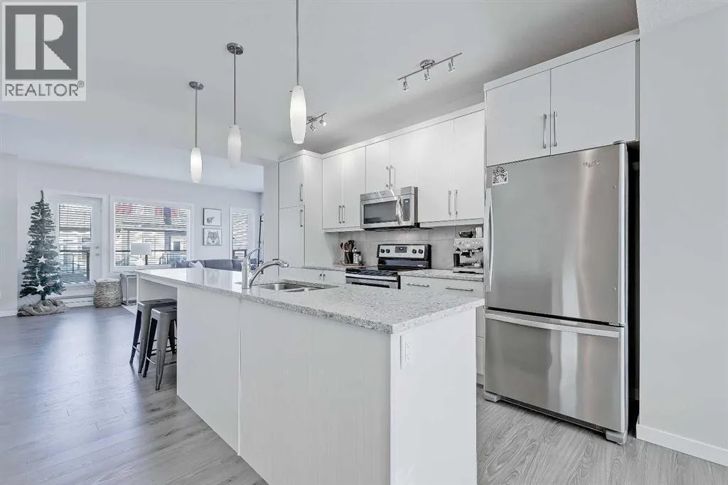 +"PublicRemarks": "Welcome to refined townhome living, set within one of Cochrane’s most scenic and thoughtfully planned communities! Backing onto rolling natural landscapes with elevated sightlines, this modern three-storey residence offers the rare balance of contemporary design, functional space, and everyday comfort, all just minutes from downtown Cochrane and the Bow River pathway system.Spanning over 1,715 sq ft of developed living space, this home is bright, airy, and beautifully laid out across three levels, designed for both daily living and entertaining. The main floor features an open-concept design anchored by a sleek white kitchen with full-height cabinetry, stainless steel appliances, and generous quartz countertops. Clean lines, soft neutral tones, and wide-plank flooring create a calm, modern backdrop that feels effortless and inviting. The dining area is perfectly positioned between the kitchen and upper balcony, creating an easy flow for everyday meals and summer entertaining, with space for outdoor dining and BBQs. On the opposite side, the living room is set at the front of the home, offering a bright, open space framed by large windows and an additional private balcony. This separation creates distinct zones for dining and relaxing, while maintaining an airy, connected feel throughout the main level.Upstairs, the private living quarters are smartly arranged. The primary suite is bright and inviting, complete with a walk-in closet and a well-appointed ensuite featuring a glass-enclosed shower and contemporary finishes. Two additional bedrooms provide excellent versatility for family, guests, or a dedicated home office, all supported by a full four-piece bathroom. Thoughtful proportions and natural light continue throughout the upper level, creating a sense of space rarely found in townhome living.The ground floor adds valuable functionality with an oversized tandem garage offering ample room for vehicles, bikes, storage, or seasonal gear. This level also incl udes mechanical space and direct access to the home, making daily routines seamless and practical. Beyond the home itself, River Heights is known for its elevated setting, peaceful surroundings, and strong sense of community. Residents enjoy quick access to walking and biking trails, playgrounds, schools, and local amenities, while still being moments from Cochrane’s historic downtown, cafés, and shops. With Calgary less than 30 minutes away and the Rocky Mountains within easy reach, this location offers a lifestyle that blends convenience with natural beauty.Modern, low-maintenance, and thoughtfully designed, #408, 501 River Heights Drive is an exceptional opportunity to own a turnkey townhome in one of Cochrane’s most desirable communities. A home that feels current, comfortable, and effortlessly livable. (id:62650)"