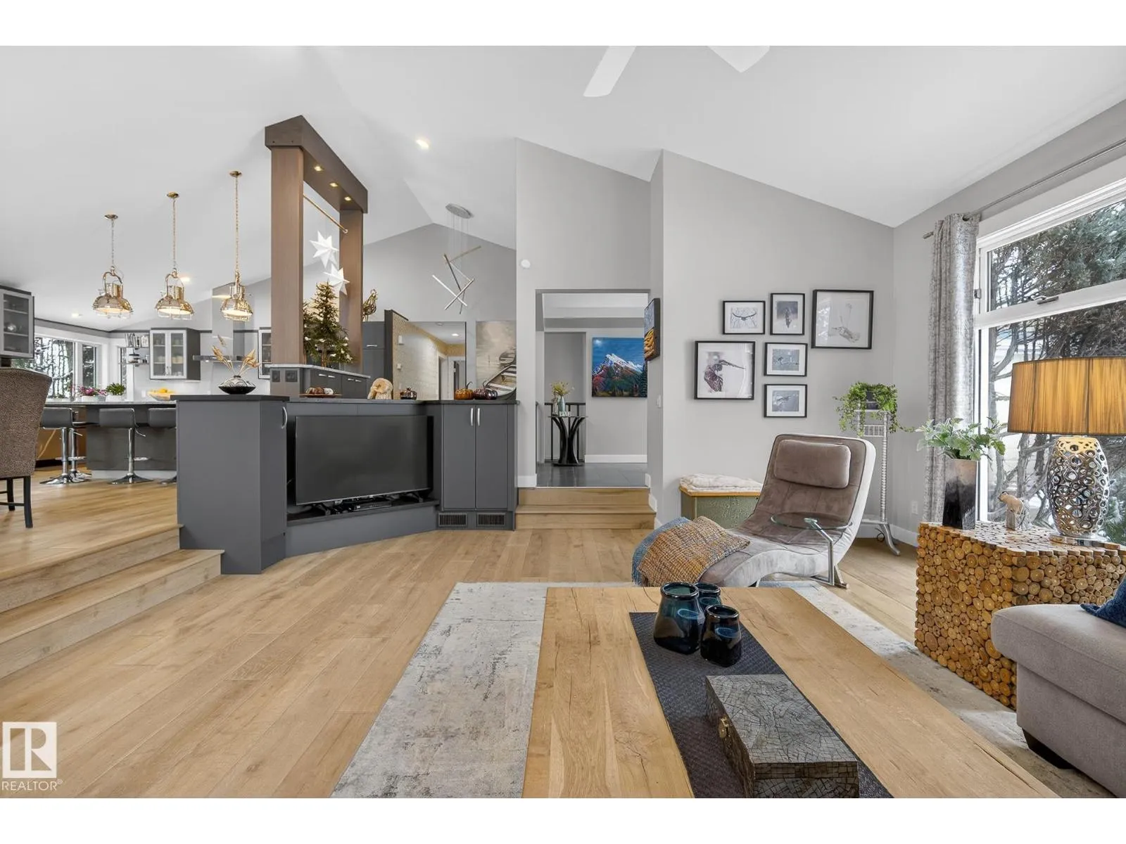 +"PublicRemarks": "This exceptional two-storey home located in the beautiful community of Kinglet by Big Lake offers luxury and thoughtful design. The main floor includes a welcoming front entry with an impressive open-to-below lining room, a central flex room ideal for a home office or studio, a large island, large mudroom, and a seamless flow to the dining area and great room. Upstairs, you’ll find 3 bedrooms, ensuite with dual vanities, and a central bonus room. Lastly, a separate entrance is added with 9' basement ceilings for potential future development. This home is equipped with a smart home system, including thermostat and entry features. (id:62650)"