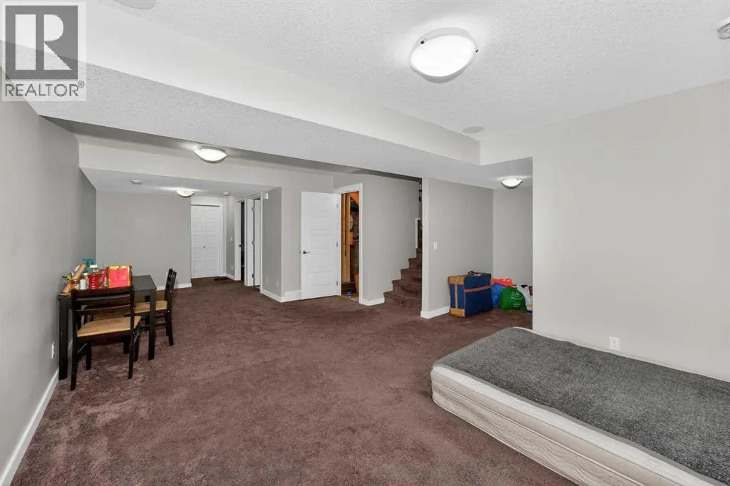 +"PublicRemarks": "Discover this exceptional former showhome nestled in the highly desirable Cornerstone community, offering an impressive blend of space, upgrades, and location. This beautifully maintained residence features 5 bedrooms, 3.5 bathrooms, and a fully developed basement, providing approximately 2,513 sq. ft. of total living space. The home is fully air-conditioned and complemented by a spacious deck and a massive 25’ x 23’ double detached garage, ideal for parking, storage, and hobbies.Enjoy unmatched convenience with a playground just steps away and quick access to Stoney Trail, ensuring effortless commuting throughout the city. Upon entry, the home is filled with natural light streaming through expansive windows, creating a bright and welcoming ambiance. The main floor boasts 9-foot ceilings and offers two separate living areas, one enhanced by a gas fireplace, perfect for cozy evenings.Designed for both everyday living and entertaining, the open-concept kitchen showcases stainless steel appliances, including a gas cooktop, built-in oven, and microwave, along with a refrigerator and dishwasher. Elegant maple cabinetry, a pantry, and a large island featuring an undermount sink, wine storage, and additional cabinetry provide both beauty and functionality. Stylish pendant lighting, recessed lighting, and under-cabinet illumination complete the space.The main level is finished with hardwood flooring, while the staircases, upper floor, and basement are finished with soft carpeting for added comfort. Upstairs, the primary suite offers a private retreat with a custom built-in closet and a 4-piece ensuite featuring both a soaker tub and a separate standing shower. Three additional well-proportioned bedrooms and a full 4-piece main bathroom complete the upper level.The fully developed basement includes a large recreation area, ample storage, and a bedroom with a custom walk-in closet and a 3-piece ensuite, making it ideal for guests, extended family, or private use.Not able upgrades throughout the home include titanium wire shelving and railings, zebra blinds and window coverings, and a built-in speaker system. Security and peace of mind are enhanced with seven exterior security cameras and a Ring doorbell camera. An underground irrigation sprinkler system keeps the landscaping lush and well-maintained with ease.This remarkable property delivers comfort, functionality, and upscale finishes in a prime location. A rare opportunity not to be missed—book your private showing today and experience everything this home has to offer. (id:62650)"