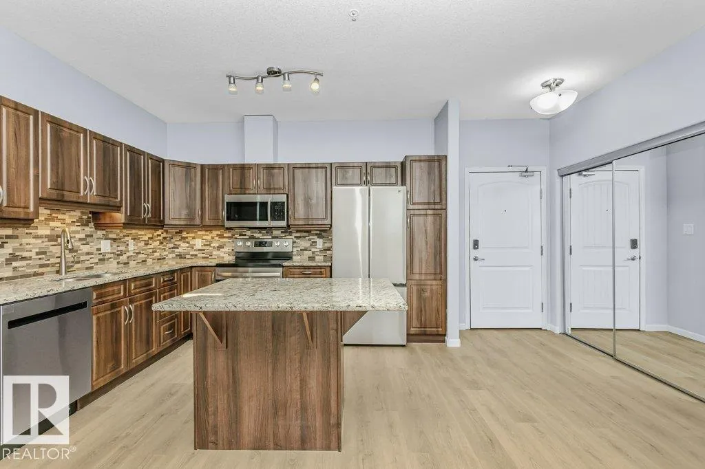+"PublicRemarks": "Lovely 2 bed/2bath PLUS den has tons of space. It features an open concept design with bedrooms tucked away from the living space. The large open kitchen includes upgraded granite countertops with SS appliances and opens onto the dining and family room, and the covered patio offers a private oasis with gas hook-up to BBQ year round. The massive primary bedroom includes a 4 pc. ensuite and walk-through closet, and the second bedroom offers tons of space to spread out! Your home also comes complete with in-suite laundry and a den - as well as central A/C for the summer and a fireplace for cozy winter nights. Also included is a titled underground parking stall c/w storage unit. Enjoy fantastic amenities with an exercise room, social/games/theatre room and guest suite rental for extra visitors. Close to shopping, schools, public transit, and just off the Henday to zip anywhere in the city! (id:62650)"