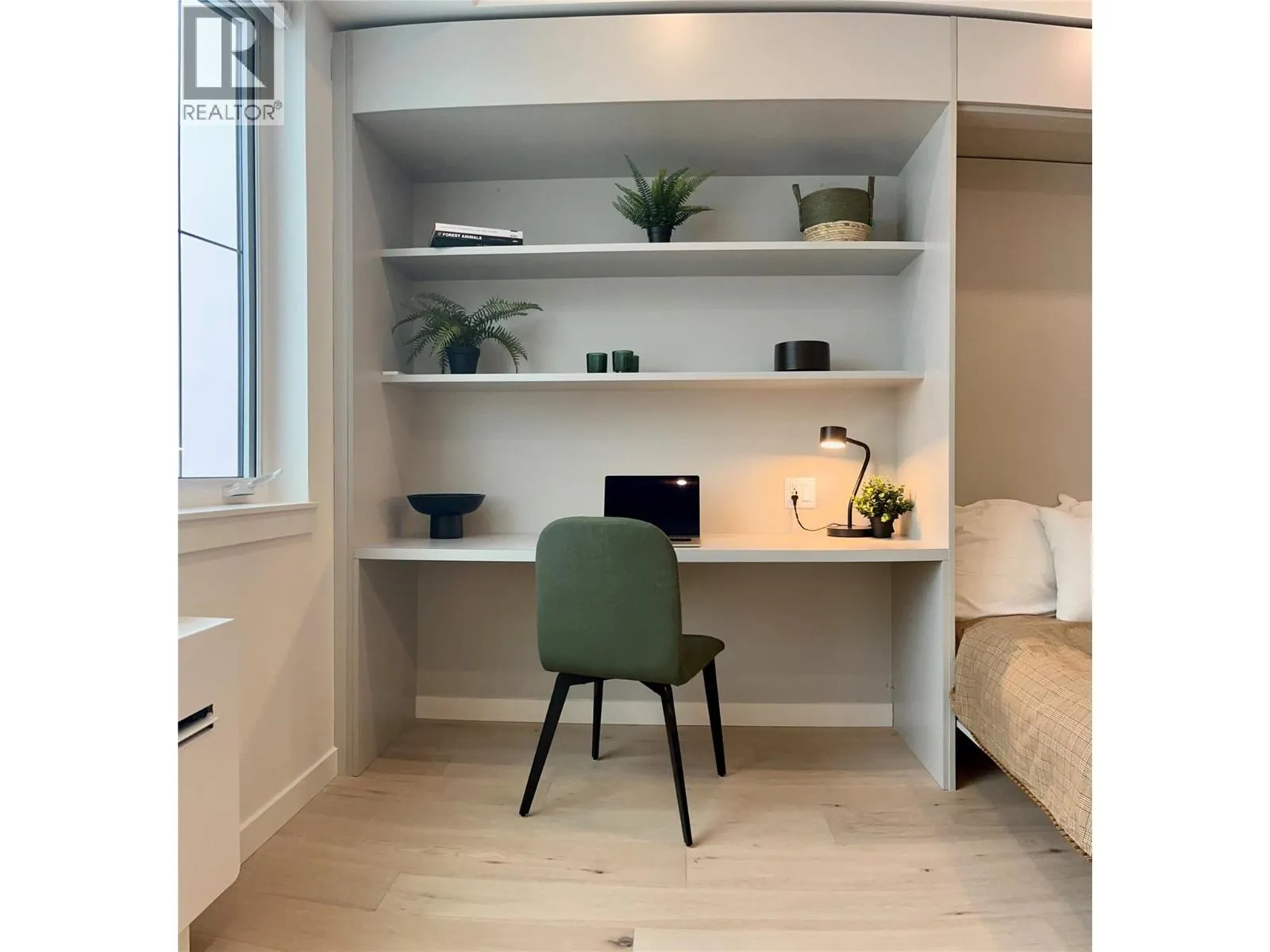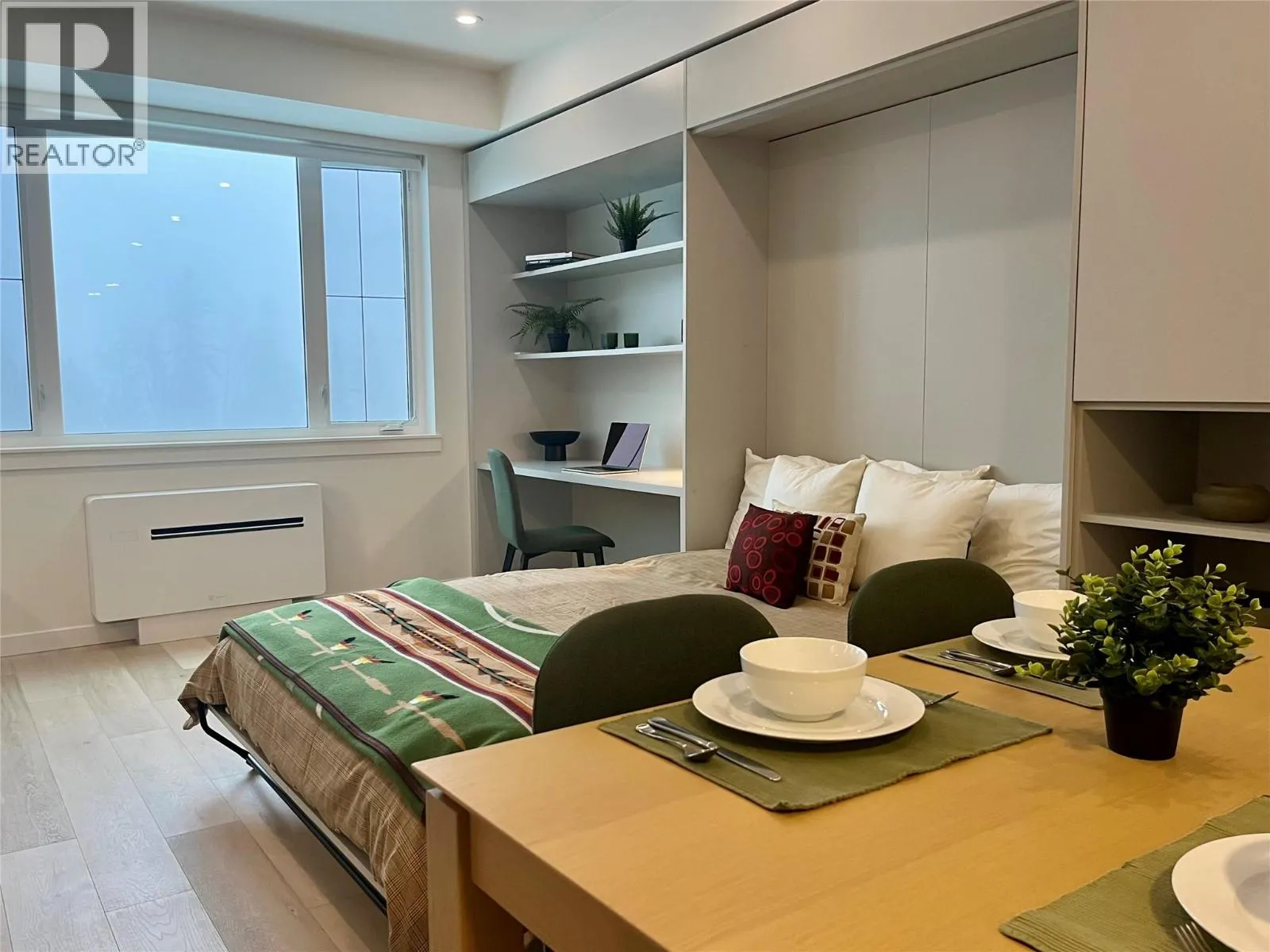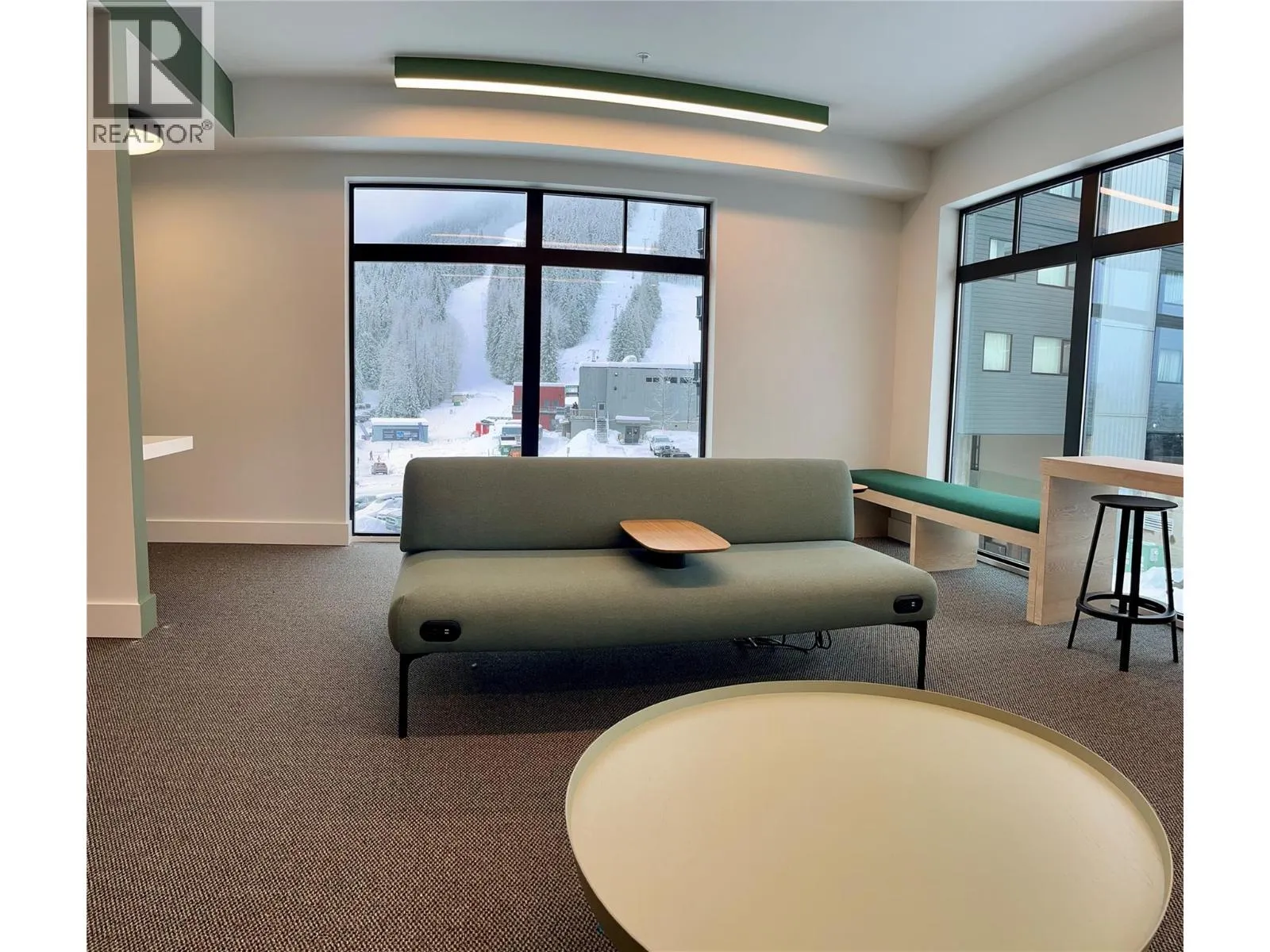 Furnished | Brand New | Designer Palette: Brand new and never occupied, this furnished studio suite features a sophisticated taupe cabinetry colour scheme paired with a rich dark-green furniture package, creating a warm, modern alpine aesthetic that feels both timeless and elevated. This suite has a good parking spot, close to the elevator. Located in the heart of RED’s