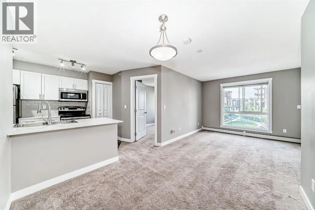 +"PublicRemarks": "Welcome home to this bright, beautifully designed 2-bedroom, 2-bath condo in an ultra-quiet, 8-storey concrete building. Thoughtfully laid out with bedrooms on opposite sides, the floor plan offers a sense of privacy and balance —ideal for shared living, a dedicated home office, or a young family. In-suite laundry conveniently located off the kitchen adds everyday ease.The modern white kitchen is both stylish and functional, featuring quartz countertops, stainless steel appliances, and soft-close cabinetry—perfect for cooking, hosting, or simply enjoying quiet evenings at home. The open living area flows effortlessly to the east-facing balcony.This home also includes titled underground parking, a titled storage locker and access to fantastic rooftop patio offering expansive community views—an inviting space to relax, unwind, or gather with friends. Emerald Sky is a well-maintained, pet-friendly building (with approval) that backs onto parks and green space, creating a calm and connected atmosphere.Set within an established yet growing community, you’re just steps from the future Symons Valley Park, a planned 16-acre destination with sports fields, playgrounds, skating rinks, walking paths, and year-round gathering spaces. You’ll also enjoy easy access to the amenities of Creekside and Sage Hill Plaza, offering everyday conveniences including Walmart, banks, shops, restaurants, and fitness studios. With quick access to Stoney Trail, Shaganappi Trail, and Beddington Trail, everything you need is close at hand.Comfort, connection, and lifestyle come together here—this is a place you’ll truly love coming home to! (id:62650)"