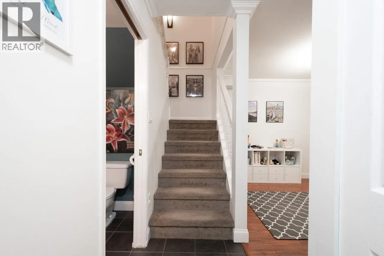 +"PublicRemarks": "INCREDIBLE LOCATION AT THE FRONT OF THE COMPLEX AND IT'S A DUPLEX!! Only joined to one neighbour! Private backyard/patio plus a large, grassy common space is right behind the unit! Open Dining and Living Area with cozy, stone decked, gas fireplace! Kitchen is updated with granite counters and Stainless Steel appliances. Huge built-in pantry has been added with tons of storage space. Cute powder room on main level. Upstairs are 3 generous bedrooms. Primary Bdrm can fit a king bed, and features a walk-in closet and a lovely ensuite. 2 parking stalls plus large locker. Walk to all 3 levels of great schools, Heritage Mountain Elem, Eagle Mountain Middle and Heritage Woods Secondary! Easy access to transit, hiking trails, Bert Flinn park and Foxwood park. 25 min walk to Newport Village! (id:62650)"