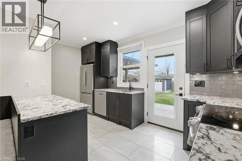 +"PublicRemarks": "Fabulous north end living awaits in this beautifully updated three bedroom bungalow, thoughtfully designed to tick all the boxes. The fully renovated main floor features a bright, open concept living space that flows effortlessly into a fantastic kitchen complete with imported granite counters and a built in dining nook, perfect for everyday living and entertaining alike. Two generous bedrooms and a stylish four piece bath are complemented by a private primary suite offering a three piece ensuite retreat. An oversized heated garage with a ten foot ceiling adds exceptional functionality. The entertainers dream backyard delivers a covered patio, a 10 x 12 shed and a versatile bonus area ideal for a playhouse or extra storage. The unspoiled basement offers endless potential, already roughed in for an additional bathroom and perfectly suited for a future in law set up. Parking is effortless with a concrete driveway accommodating four vehicles. All of this is just steps to Sunset Beach and minutes from Port Dalhousie, NOTL and a wide array of amenities, making this home an outstanding opportunity to enjoy both comfort and lifestyle in a sought after location. (id:62650)"