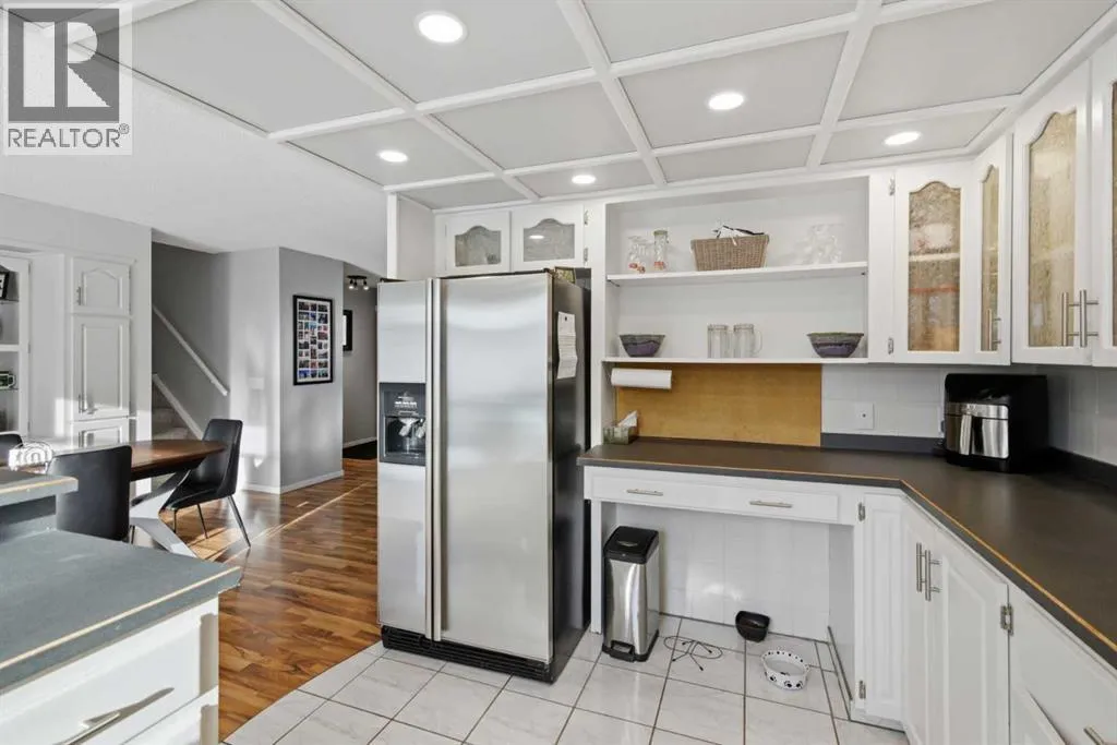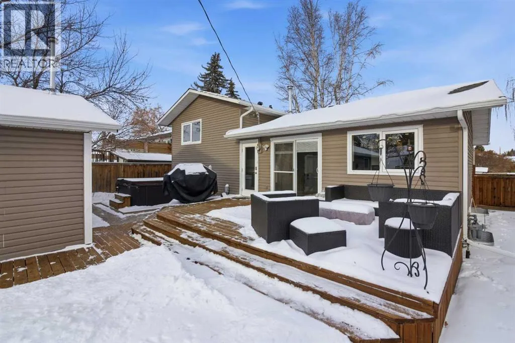 +"PublicRemarks": "Tucked away on a quiet street in a lovely mature neighbourhood, this awesome 4-level split offers 5 bedrooms and a super sunny, south-facing backyard is waiting for your family! As you walk in you step into a formal entry way with lots of space for coats and shoes, you also have easy to maintain laminate flooring which extends through a cozy living room. The living room's focal point is a modern grey tone stone-surround fireplace The heatilator fireplace offers an efficient and low maintenance way to bring warmth and ambiance to the space. The home has a bright airy feel with vinyl windows throughout and fresh paint treatments. The white-painted oak kitchen is bright and cheerful with a sunshine ceiling and loads of southern exposure. The peninsula gives you extra storage and counter space, plus a raised bar that’s perfect for hanging out with family and friends. The dining area features a built-in china cabinet and patio doors that open onto a huge back deck—great for entertaining. The patio doors are updated with built in blinds for a sleek and clean look. There is a back door which leads down to the dining room and third level and provides easy access to the back garage.Upstairs you’ll find three spacious bedrooms, all with vinyl windows and good sized closets. The primary bedroom has a cheater door to the updated main 4-piece bathroom. The third level includes a large family room with big windows and a 3-piece bathroom which is perfect for movie nights or a kids’ hangout. The fourth level adds two more bedrooms plus plenty of storage and a utility area. The bedrooms are a perfect place for teens to have their own dedicated space. Outside, the south-facing backyard really steals the show, there is a massive deck, RV parking, tons of space for kids to play, a hot tub, and an oversized double detached garage that’s insulated, heated, and wired with 220V.Queensland is a lovely mature community with lots of options for recreation and shopping. You are a short walk from Fishcreek Park and in additional local shopping options at the Deer Valley Market Place you are only 10 minutes drive to all the shopping options at Deerfoot Meadows. There are established public and catholic schools, medical clinics and pharmacies all nearby.A perfect choice for a growing family. Don't miss this lovely home! (id:62650)"