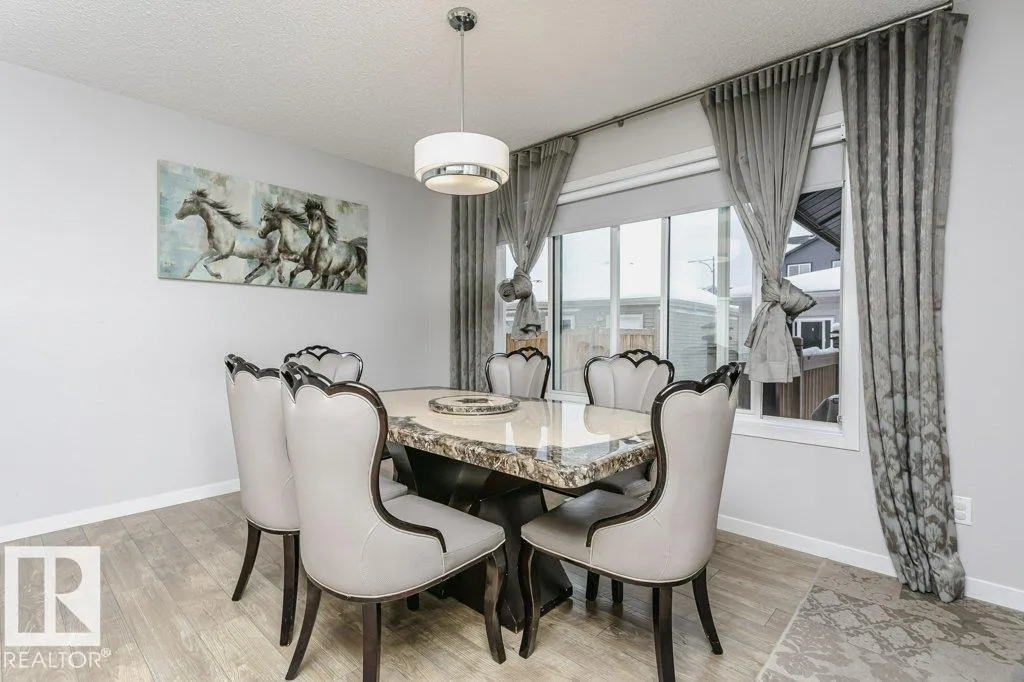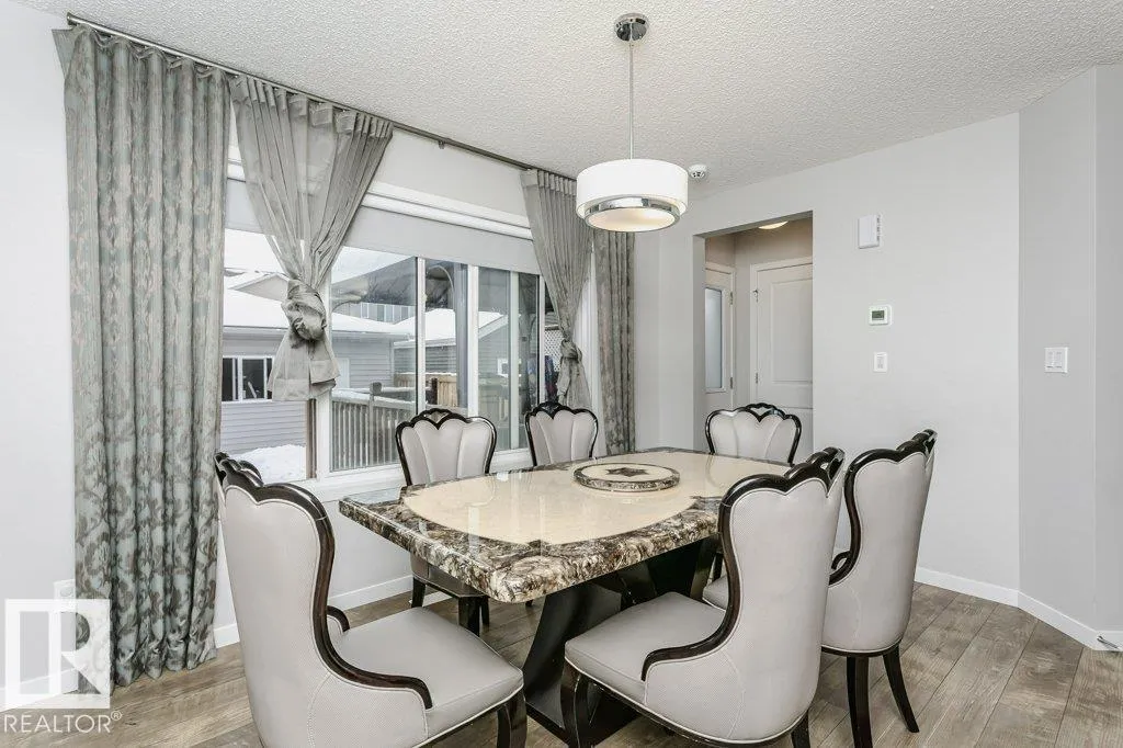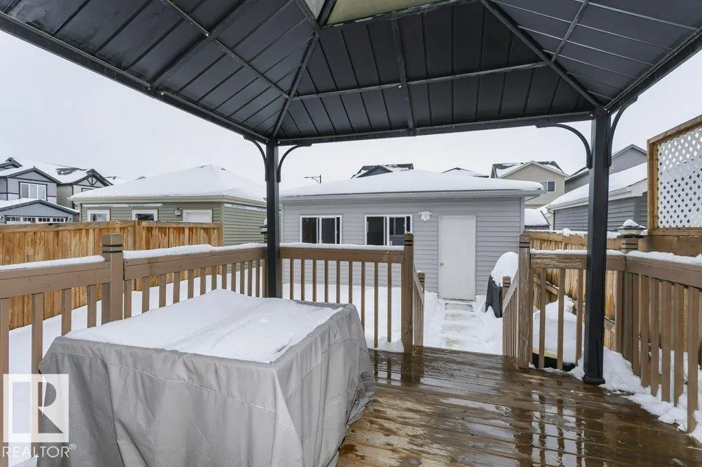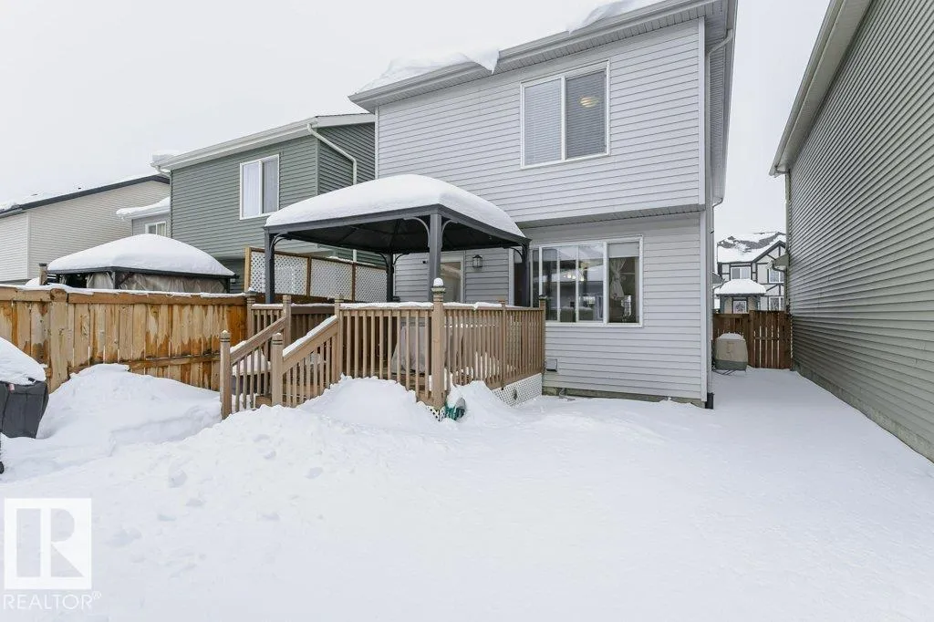 +"PublicRemarks": "Welcome to Chappelle Gardens, a vibrant SW Edmonton community known for parks, trails, and strong connectivity. This well-located property built by Brookfield offers quick access to Anthony Henday Dr, Hwy 2, Currents of Windermere, and South Edmonton Common. The main floor features a bright open-concept layout. spacious living room, electric fireplace, and a powder room. The kitchen is unique with a walk around island with quartz countertops, stainless steel appliances, and plenty of cabinet space. The dining area is at the back with a view out to the deck, and backyard. A curved staircase offers character as you go up to the bonus room. The primary bedroom offers a four piece ensuite, and walk in closet. There a two more bedrooms upstairs with an additional four piece bath. Laundry is located in the unfinished basement. The backyard showcases a deck, landscaping and an A/C unit. The double garage has room for two vehicles, and two more on the driveway. Schools, and the clubhouse are in walking distance. (id:62783)"