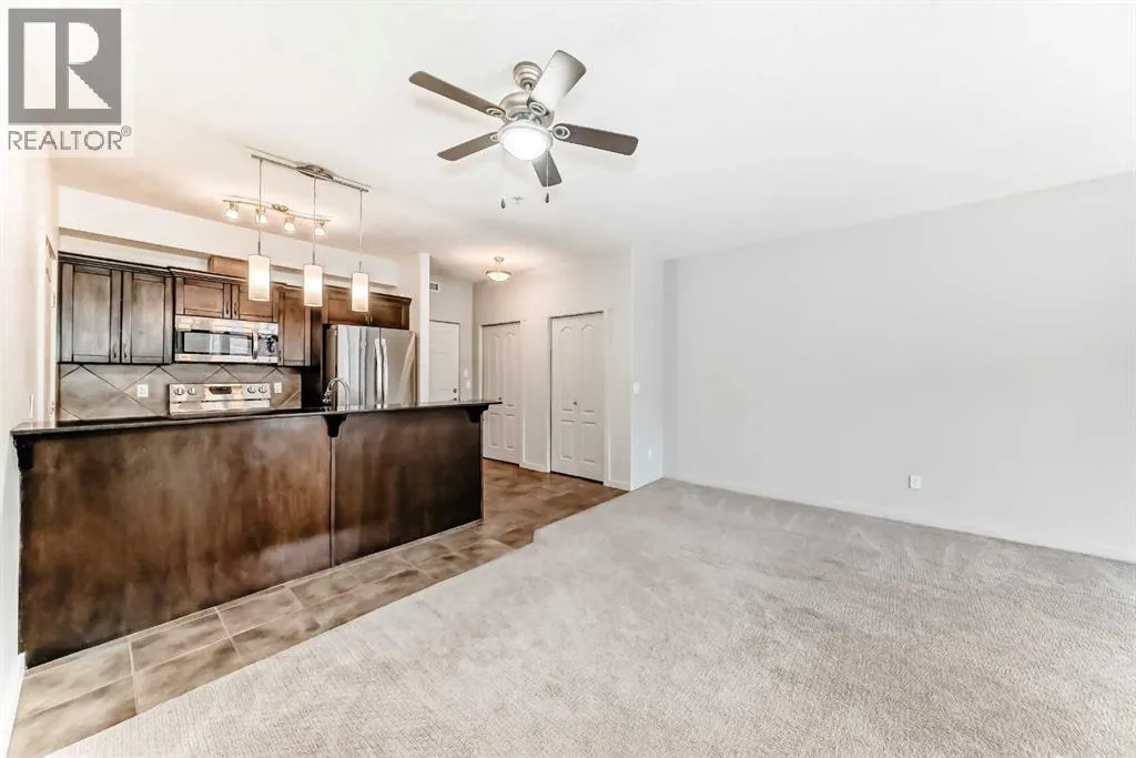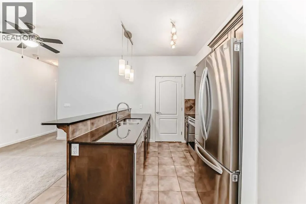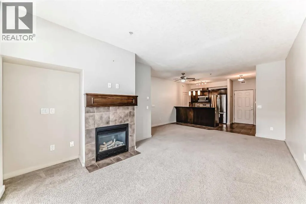 +"PublicRemarks": "Looking for a modern, move-in-ready condo for sale in Cochrane? This spacious 2-bedroom, 2-bathroom home offers a bright, open-concept living area with large windows and a layout designed for both comfort and style, located in the desirable East End community. Enjoy a modern kitchen featuring stainless steel appliances, granite countertops, a sit-up breakfast bar, and maple cabinetry providing ample storage. The generous living room includes a gas fireplace for chilly evenings and opens onto a private patio—perfect for BBQs, relaxing, or entertaining friends and family.The primary bedroom boasts a walk-through closet and a luxurious 5-piece ensuite. A second bedroom and 4-piece bathroom add flexibility for guests, family, or a home office. Additional highlights include in-suite laundry with extra storage, titled underground heated parking, and condo fees that cover heat, water, building maintenance, and snow removal.Centrally located in beautiful Cochrane, this condo is close to shopping, restaurants, and parks, with easy access to Highway 1A and just a short drive to Calgary and the mountains. Offering both convenience and tranquility, this home is ideal for first-time buyers, downsizers, or investors looking for Cochrane real estate opportunities. Don’t miss out—contact your favourite REALTOR® to book a private viewing today! (id:62650)"