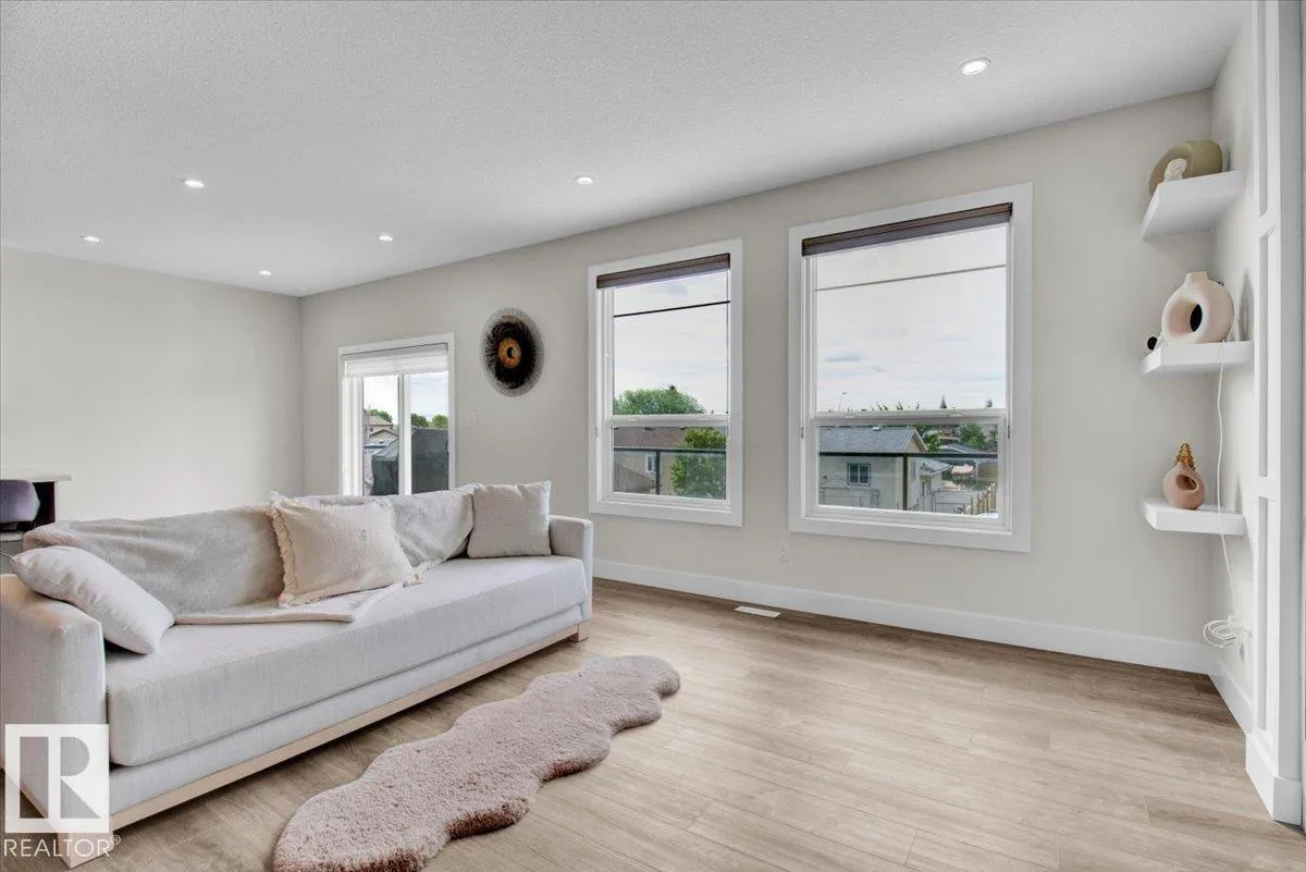 +"PublicRemarks": "Welcome to the Stellar by Sterling Homes, a beautifully designed home that blends comfort, style, and everyday functionality. The main floor features luxury vinyl plank flooring and 9’ ceilings, creating a bright and inviting atmosphere. An elegant foyer with coat closet opens to a sun-filled great room highlighted by a large front window. The centrally located kitchen offers quartz countertops throughout, a Silgranit undermount sink, island with flush eating ledge, spacious pantry, and upgraded Thermofoil cabinetry with raised doors and soft-close drawers. At the rear, the dining area overlooks the backyard, while a convenient half bath and rear entry provide access to the parking pad, with option for a detached double garage. Upstairs, enjoy an open loft, a spacious primary suite with walk-in closet and 3-piece ensuite with tub/shower combo, plus two additional bedrooms, a full bath, and laundry closet designed for stackable appliances. Black plumbing and lighting fixtures complete this home. (id:62783)"