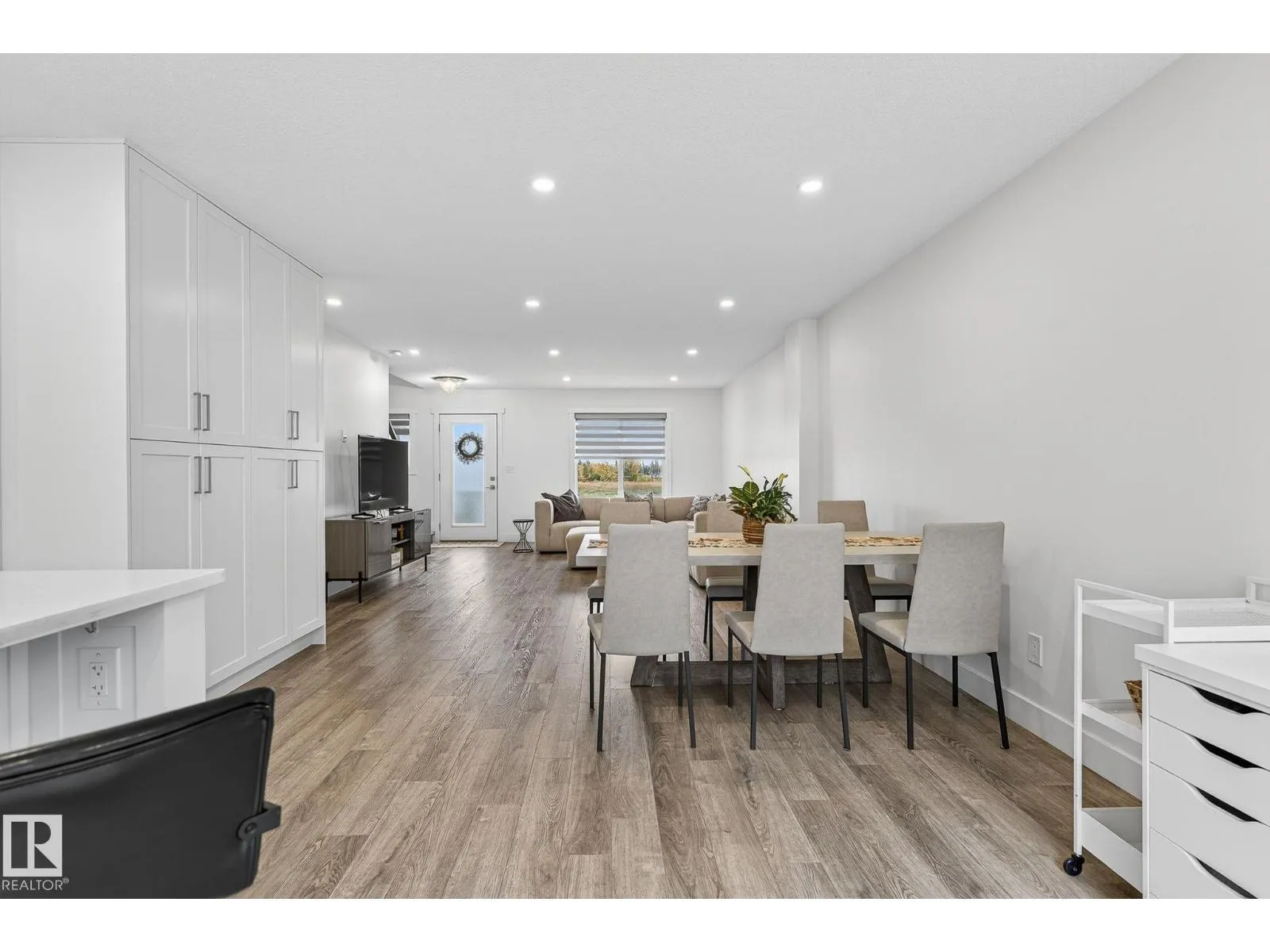 +"PublicRemarks": "Modern end-unit townhome offering just under 1,800 sq ft of total living space in desirable Eaux Claires. Completed in May 2023, this home features premium finishes and a functional layout in a mature, quiet neighbourhood. The upper level includes a spacious primary bedroom with 4-pc ensuite, two additional bedrooms, a 4-pc main bath, upper-floor laundry, and ample closet space. The main floor offers a bright open-concept living and dining area, a modern kitchen with floor-to-ceiling cabinetry, and a main floor powder room. The lower level features a flex/bonus room, utility room, and access to the fully finished double attached garage. Central A/C included. 5-minute walk to Eaux Claires Transit Centre, close to shopping, schools, grocery stores, and cafés. (id:62783)"