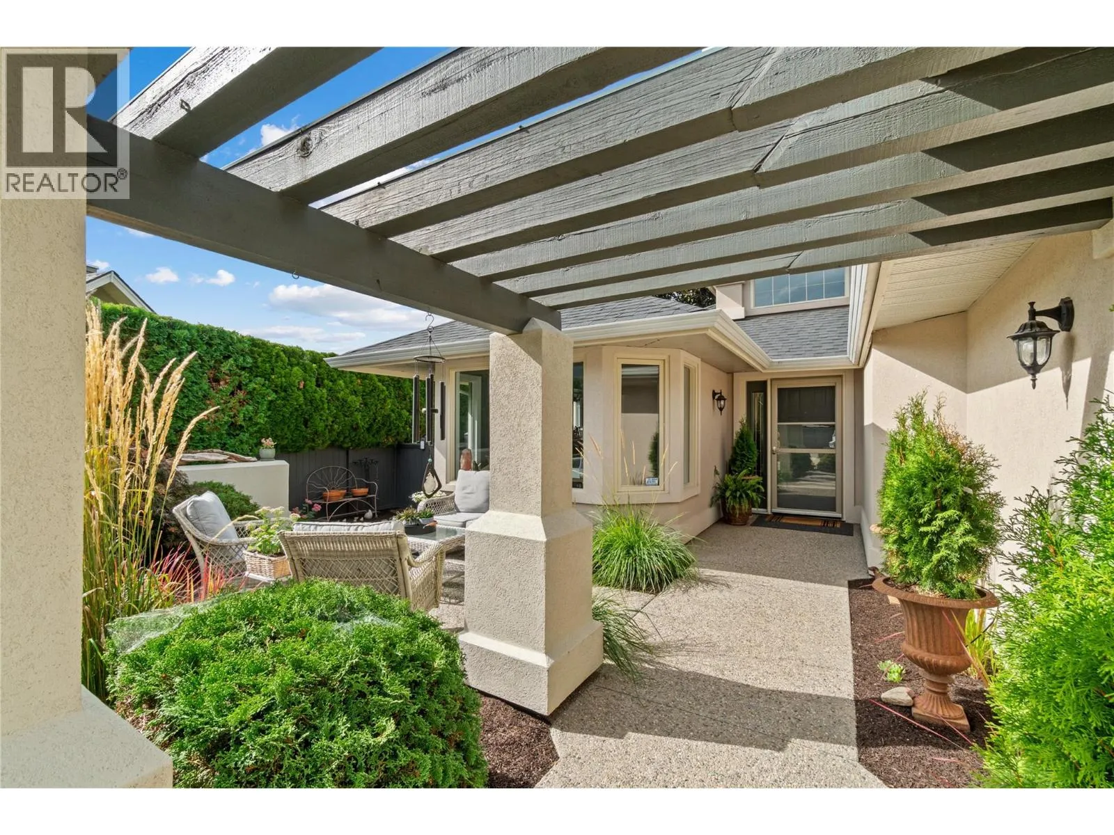 +"PublicRemarks": "Beautiful Walkout Rancher in the Gallaghers Canyon Golf Community. From the moment you step inside, you’ll be captivated by the grand interior, featuring gleaming hardwood floors, soaring ceilings and large picture windows. The updated kitchen boasts stylish two-tone cabinetry, stainless steel appliances, a functional layout and a striking 3-sided gas fireplace. The living room is a sophisticated retreat, perfect for unwinding after a round of golf or hosting friends and family. The primary suite is complete with a spa-inspired ensuite, a massive walk-in tiled shower, and a generous walk-in closet. Also on the main level is a bright second bedroom and a convenient laundry room. Downstairs, the fully finished walkout lower level offers suite potential with a separate entrance, two additional bedrooms, a den/media room, a spacious family room, and a summer kitchen—ideal for guests or extended family. The outdoor living space is nothing short of spectacular. At the front, a large courtyard sets the tone for relaxed mornings & evening gatherings, while a tranquil water feature with a stream and pond adds to the peaceful ambiance. The backyard offers a lush greenspace, covered patio, and ample room to enjoy Okanagan’s beautiful seasons. Additional upgrades include a new exposed aggregate driveway, new asphalt roof, and a recently replaced hot water tank. Enjoy top-tier amenities including an indoor pool, whirlpool, fitness center, sports court, games room, club rooms, and library. (id:62650)"