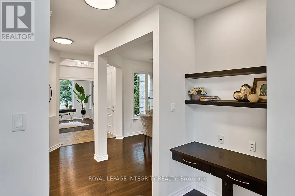 +"PublicRemarks": "Nestled on the prestigious Kanata Estate! This Cardel custom-built luxury beauty sits on an exclusive private street, boasts about 4000 sqft living space with 4+1 spacious bdrms & 4 baths, with expensive EIFS exterior (Exterior Insulation & Finish System), all wrapped up in an irresistible package. Step in and be greeted by the rich solid hardwood flooring that flows seamlessly throughout the main and second levels. The grand hardwood staircase is a statement piece, the living room is an absolute showstopper with its soaring cathedral ceiling and massive two-story south facing windows that flood the space with splendid natural light, cozy up by a tall gas fireplace. The modern kitchen features SS appliances, luxury granite counters and a huge island that adds a touch of elegance. The butler's pantry is perfect for storing gourmet goodies. Other features: the main floor office/den, over-sized garage with extra storage space, a large mudroom off the garage with walk in closet; it is also equipped with smart wiring home automation and an audio system. The primary suite is truly a retreat, boasting two walk-in closets, the ensuite complete with dual vanities and brand new quartz contertops, a custom glass shower, and a deep soaking tub.The other 3 bedrooms share a large updated main bath. The fully finished lower level is an entertainer's dream, featuring high-end laminate flooring, a large full bathroom, a charming bedroom with stylish barn doors, a spacious recreation room ideal for family fun, and even a dedicated gym or hobby room. The location is unbeatable! Walk your kids to the highly-rated St. Gabriel Elementary and All Saints HS, within a top-tier school district!!! Shopping, recreation, and even high-tech employment opportunities are all conveniently close by. Just steps away from the serene walking trails Beaver Pond. Get ready to enjoy this perfect blend of luxury, convenience and tranquility in Kanata Lakes. (id:62650)"